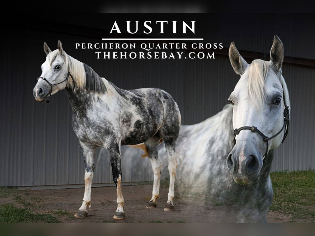 OPEN BIDDING ON THEHORSEBAY,COM. SALE ENDS ON 04/16. More information is available on the website, including an UTD vet inspection, Coggins, video, images, and the owner's contact information to ask questions, request information, or make arrangements to come to visit. Austin is a beautiful dapple grey and white paint mare. She is a 16hh, Percheron/quarter horse cross. She is between 5 and 6 years old and was started late to allow her to mature and grow. She has good bones and goes barefoot without issues. She has a quiet personality and loves attention. Beautiful long mane and tail. She leads, loads, and baths. Stands tied. Has had extensive ground training and 4 months of saddle training, the most recent being English riding. Rides western and English. She has jumped cross rails, and with some more practice, she would be fantastic at it. She has the smoothest trot and canter. Listens to leg and a decent seat stop. She had been hand-led down busy trails and did great with bikes, people, dogs, and kids. She is still green in areas but has the potential to go in any direction! She requires consistency or she loses focus. UTD on vaccines, de-worming, and farrier.