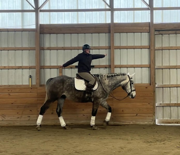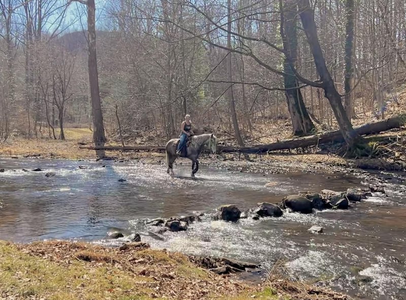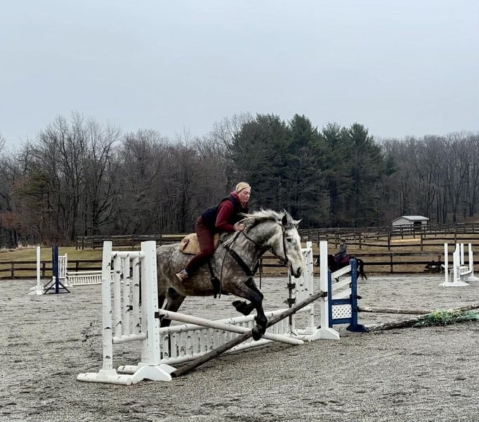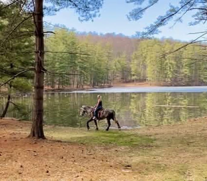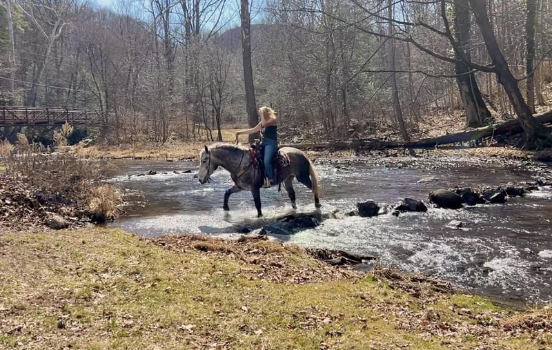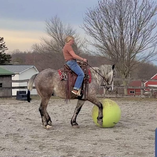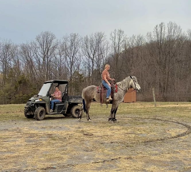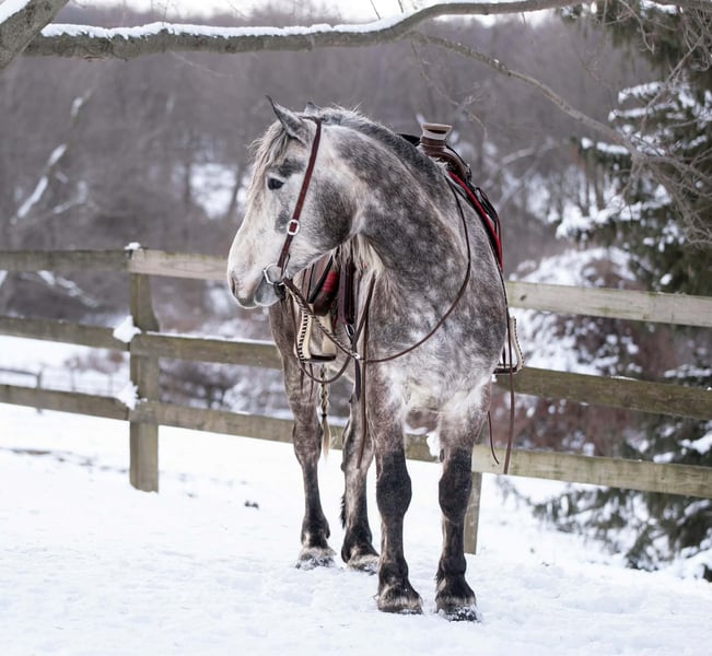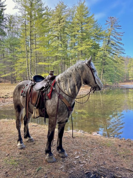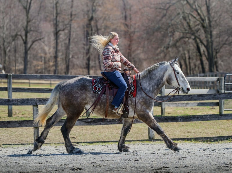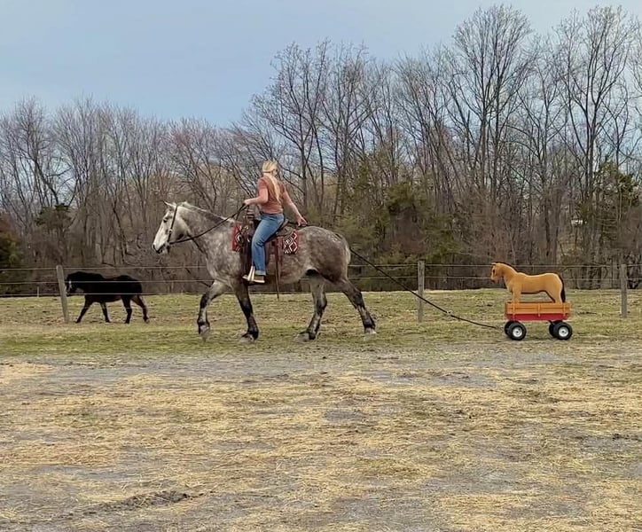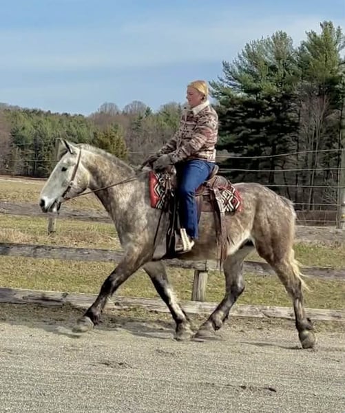 🌟𝑨𝒑𝒓𝒊𝒍 𝐀𝐋𝐋 𝐒𝐓𝐀𝐑 𝐋𝐈𝐍𝐄𝐔𝐏🌟 Happening now thru MONDAY | APRIL 6th - Available EXCLUSIVELY on HorseBid's website! For more details and to register visit: www.Horsebid.com CONSIGNOR CONTACT: Triple R Horses 610-806-2613 LOCATION: New Holland, PA BREED: Percheron/Friesian REGISTERED: No REGISTERED NAME: Sebastian COLOR: Dappled Grey HEIGHT: 16 AGE: 4 GENDER: Gelding “Sebastian” is a 4yr old, 16hh, Percheron/Friesian cross gelding, with the sweetest personality, and a face that you simply can not resist! Don’t let his age deter you, Sebastian is an old soul, who longs for love and loves his people. If you are looking for safe, reliable, fun, and an ultimate all arounder, here is your boy!!!! This boy is sturdy and compact, yet not a monster in height, making him very versatile and friendly for smaller set ups. Sebastian is an amazing trail partner, and would make a great husband horse! This boy rides and drives, and he is a certified sweetie pie. In the barn, Sebastian has zero bad habits. He never complains and doesn’t mind if he is alone or has buddies. He can live in, or out, gets along super well with others and is gentle in a mixed herd. If you are present in the pasture, he will find you and come ask for attention. He stands on the cross ties to be groomed, braided, tacked, etc. He has zero bad habits or stall vices and is as quiet as a mouse in his stall. Sebastian has good ground manners and is safe for beginners, and kids to work around. He is safe with my pups running all around him, and doesn’t mind commotion in the barn. Sebastian is an amazing trail partner. He is quiet, easy going, and brave. He is the perfect mixture of laid back and adventurous. He will walk around all day long on the buckle and follow the group, or take the lead and go off grid pushing through the woods. Sebastian crosses water, logs, bridges, rocks, and is safe with traffic, machinery, bikes, dogs, you name it. He is happy to stop and let hikers pet him. He will ride in the lead, middle, back, and is willing to leave the group and go off on his own, with that, he definitely has the mentality to be a great fox hunter. Drop your reins and enjoy the ride, he will mosey right along. But he is not a dead head and pays attention to his footing, he knows to shift his weight going downhill, takes care of his rider on narrow cliff sides, and is willing and happy to move out asked. You can trot or canter then ask him to come right back down to an easy walk. He would make an awesome mount for someone who is looking for a camping partner, mountain horse, or hunting. He is patient and happy to stop and stand when you ask. On one trail ride, we came across mountain climbers, he didn’t bat an eye at them up above his head, instead he looked up, and watched them, almost in awe. Sebastian ties to the trailer quietly while getting ready, and he is the same horse in new places. This boy is very reliable and the same horse every ride. He loads and trailers well, and fits right into my normal size horse trailer. He is the type of horse that you can throw your husband on and pack his saddle bags full of beer. Go and enjoy the ride! Sebastian rides western, english, bareback and in a plain snaffle. He has very comfortable gaits, and listens great to voice commands. He has a smooth, lofty, canter, in fact one of the most comfortable canters I have ridden on a draft cross. Give a kiss and he will pop right into a lovely canter with smooth transitions. You can adjust his trot from slowwww and pokey to, a more extended trot. He is the perfect combo of whoa and go, he is happy to be lazy and slow yet you don’t need a crop or spurs to ask him to go to work. He is light in your hands and learning to move off of leg. Say “whoa” and he will stop. Sebastian is extremely smart and enjoys learning. He is always happy and doesn’t get upset with his rider. He is the same horse every ride and does not need to be in a routine. Climb on and go have fun. In the ring Sebastian will walk, jog, trot, canter and is learning his leads nicely. He naturally picks up the correct leads every time. While he is still considered green in the arena due to most of his time being spent hacking or trail riding, he is extremely willing, and loves to please his person. He enjoys ring work and learning. This guy has such an amazing brain already, and he is only going to get better. Sebastian has had a light and easy start to life and he takes everything in stride as if he’s done it before. He has not been pushed, and has been worked appropriately for his age. I have not pushed for collection, he is naturally soft in your hands. The videos you see of him trotting ground poles, that was the first time I asked him, you can see him use his brain and figure it out. While drafty, Sebastian is agile and light on his feet. He is not a clumsy, pluggy, no thoughts type of horse. Due to his age, he has only been introduced to jumping recently and has not jumped a lot. The jumping footage you see in his full video is the first time that I asked him to jump, steady and honest he was to every fence. He could easily make an amazing fox hunter. I could also see him dabbling in low level dressage or eventing. This boy is currently set up to head in absolutely any direction. His calm demeanor and people person attitude shows that he could even be a therapy horse. Sebastian is broke to drive single and double. He is quiet and easy under harness. He is patient and will stand around all day. I could see him being a wedding horse, with his beautiful grey color and quiet attitude. I haven’t driven a horse in about a year and a half. I was nervous and of course, I picked the cold day with 30mph winds. However, Sebastian gave me my confidence back. He was patient with me, and did everything I asked. He is not a fast horse under harness, he is slow and easy going, a Sunday stroll type of guy. He listens to all of