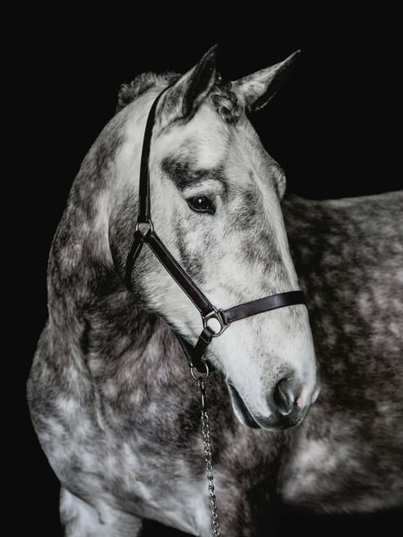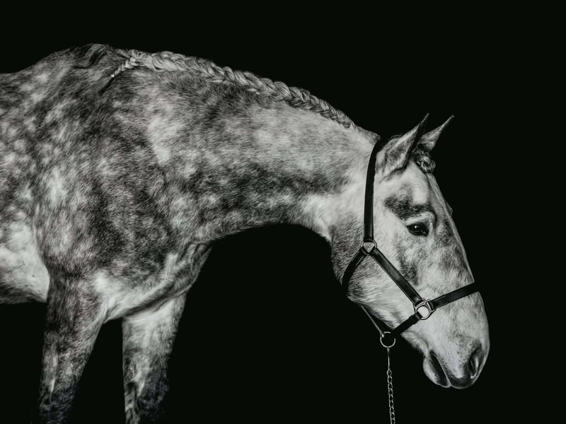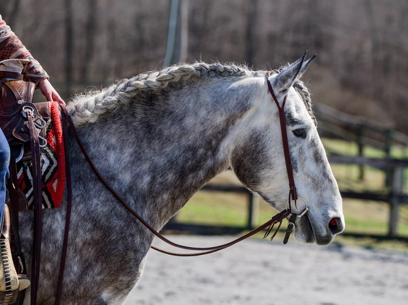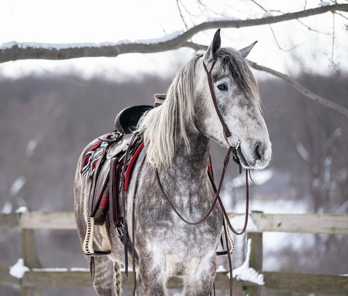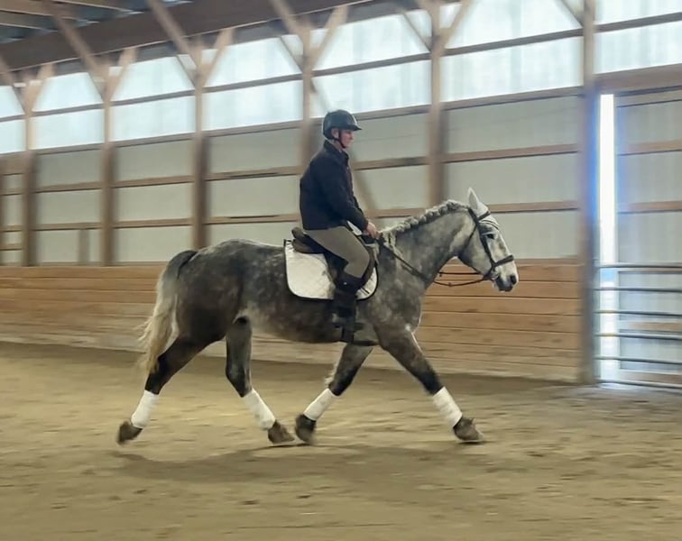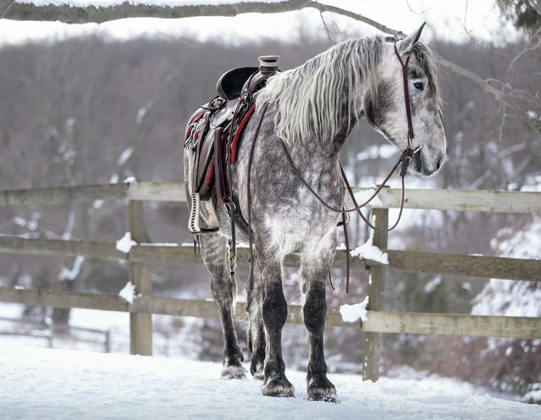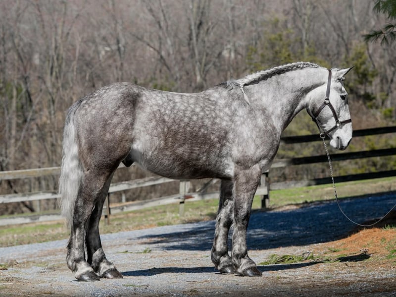 Sebastian, 4 Jahre alt, 1,65 m großer, gefleckter Grauer Percheron/Friese-Wallach