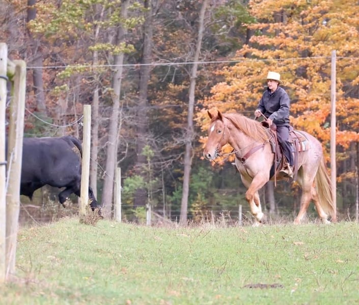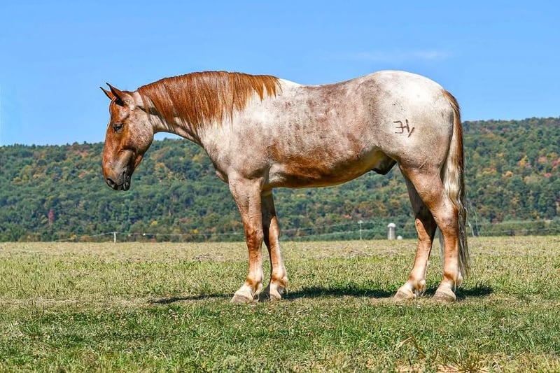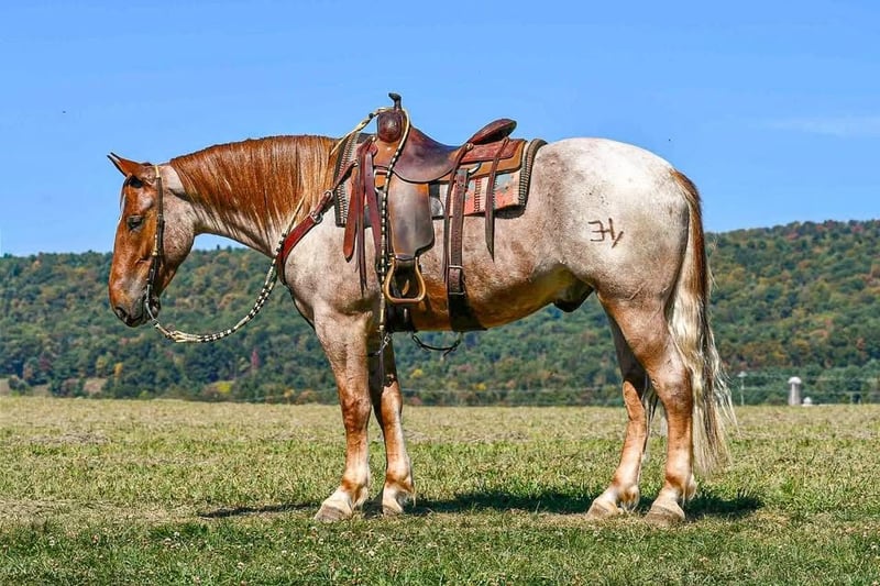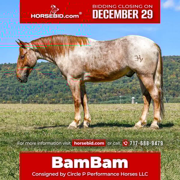 ⚜️ 𝓗𝓮𝓻𝓲𝓽𝓪𝓰𝓮 𝐖𝐢𝐧𝐭𝐞𝐫 𝓒𝓵𝓪𝓼𝓼𝓲𝓬⚜️ Happening now thru MONDAY | DECEMBER 29th - Available EXCLUSIVELY on HorseBid's website! For more details and to register visit: www.Horsebid.com CONSIGNOR CONTACT: Circle P Performance Horses LLC 717-688-9479 LOCATION: Littlestown, PA BREED: Percheron Quarter Horse Cross REGISTERED: No COLOR: Red Roan HEIGHT: 16.1 AGE: 4 GENDER: Gelding ✨ 𝐒𝐚𝐟𝐞, 𝐒𝐭𝐮𝐧𝐧𝐢𝐧𝐠 & 𝐓𝐚𝐥𝐞𝐧𝐭𝐞𝐝! ✨ “BamBam” is a breathtaking 4 year old, 16.1 hand gelding. BamBam has had a phenomenal upbringing, he rides English and western, works around the ranch, hacks out on the trails and he’s started in the cross country field! He puts his heart in every job and strives to give his rider 110%. The opportunities are limitless for this gelding! Under saddle, BamBam is smooth, balanced and correct. He picks up both leads, has comfortable transitions and will take a jump with ease! He’s brave over fences and has the scope to jump higher! Bam has the confirmation, brains and versatility to excel in cross country, fox hunting, dressage, equitation etc! He is not the type of horse that needs to be in a program. Absolutely no prep - he can sit for a month and go straight to work! I have let the kids jump on and play with him in the arena - he is so patient, forgiving, and quiet minded. He would be perfect for a youth rider or adult amature working with a trainer to gain confidence and grow to the next level! He’s a saint! If English isn’t your thing, he also rides western and will put in a honest days work on the ranch! Bam has been used to check fences, gather and move cattle and works good alongside dogs! On the trails, BamBam is as safe, reliable and confident as they come! He will cross anything you put in front of him - bridges, water, deadfall, railroad tracks, you name it! He has been to town and is traffic safe! He’s acclimated to the craziness of daily life around the farm and doesn’t mind loud noises, trucks, trailers, equiptment, ATVs/SXSs, bicycles, scooters, tarps, flags, balls, etc. He is use to kids and dogs running around the barn and pays no mind. At home, BamBam is everyone’s favorite! He is an easy keeper with no maintenance or quirks. He will stand all day in the barn to be groomed and loved on. He is good for all things - bathing, clipping, tacking up, farrier, vet, dentist, loading, hauling and he is always the same horse off farm as he is at home! I normally keep him shod when in full work, but with coming into winter, Bam is currently barefoot. He’s got big, strong, hardy feet and gets nothing but compliments from my farrier! He is use to being turned out in a mixed herd with other geldings and mares, mules and minis - he gets along with everyone! I never have to worry about catching him - he can be at the very far end of the field and if he hears me whistle he comes galloping to the gate! BamBam has the absolute best personality. He is so incredibly sweet and gentle, and he loves spending time with his people. He never misses an opportunity for attention as he’s always right there in your pocket! He has an “old soul” Yellow Lab demeanor that is priceless in my mind. BamBam has captured my heart and I want to see him land in the BEST home! He is a true, honest, once in a lifetime gelding. Please feel free to reach out with any questions or to schedule a visit to come meet him!