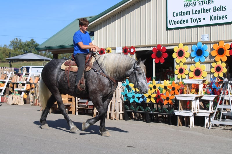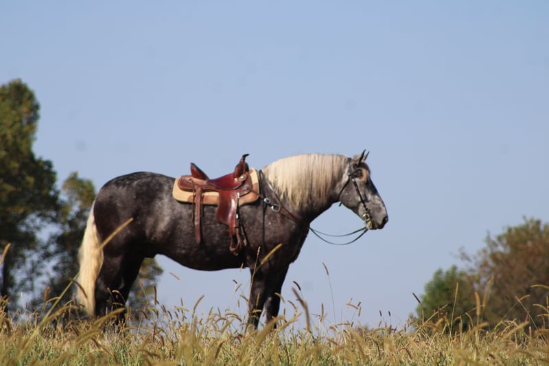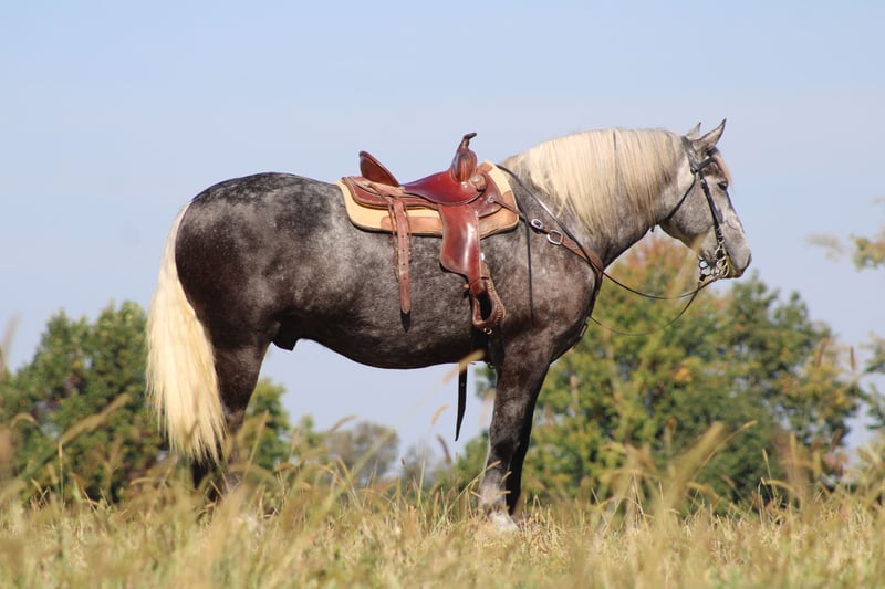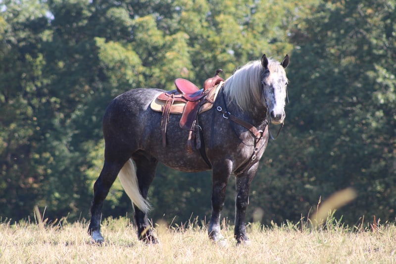 🍂 𝓐𝓾𝓽𝓾𝓶𝓷 𝑨𝑳𝑳 𝑺𝑻𝑨𝑹 𝑳𝑰𝑵𝑬𝑼𝑷 🍂 Happening now thru MONDAY | OCTOBER 6th - Available EXCLUSIVELY on HorseBid's website! For more details and to register visit: www.Horsebid.com CONSIGNOR CONTACT: Hershberger's Farm 330-600-0197 LOCATION: Millersburg, OH BREED: Percheron X Quarter Horse REGISTERED: No COLOR: Grey HEIGHT: 16.1 AGE: 4 GENDER: Gelding Meet Hershey's Bubbles!!! Bubbles is a once in a lifetime find that will get along with just about anyone. He is 4 years old and is a 3/4 Percheron and 1/4 Quarter Horse. Hershey's Bubbles is about as BOMB PROOF and safe as you can find a horse!! His sweet attitude in the barn and his willingness on a trail ride will please anyone. He is absolutely traffic safe and on trails he will step over logs and go through streams with no issues. Bubbles picks up both leads and has been ridden English, Western, or bareback. At 4 years old Bubbles is very mellow and safer then most horses. He has been used here to give rides and also has been in our petting area a lot. He is very gentle with kids and is sure not to nip their fingers when they feed him carrots. Bubbles has been driven single a lot as well as double with another horse. Bubbles has absolutely no fear and will go through whatever you point him at. He is the type of horse that if you can climb on his back you can ride him. It doesn't matter if you use him once a month or every day he will always be the same. He stands nice to tack up and to mount. Bubbles also comes running up to the gate when you whistle at him when he's out in the pasture. He does great at picking up his feet and also loves getting a bath. His beautiful color grabs everyones attention as he goes by. He's been Downtown on busy highways and there is no truck big enough to spook him. If you like a pretty horse and if safety means anything to you, you just can't afford not to have a horse like Hershey's Bubbles!!!! To learn more about Bubbles call or text 330-600-0197.