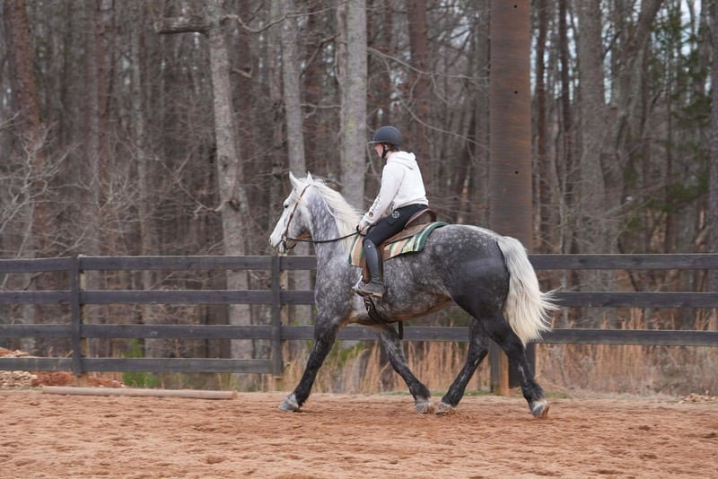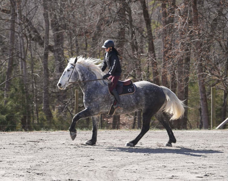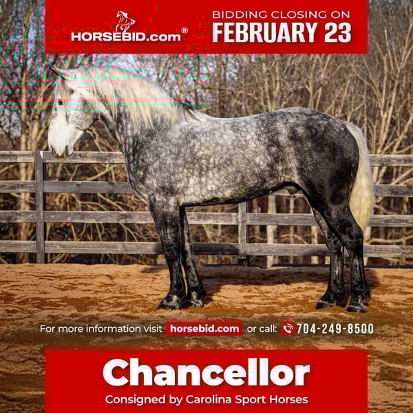 💎 𝐓𝐇𝐄 𝓓𝓲𝓪𝓶𝓸𝓷𝓭 𝐒𝐇𝐎𝐖𝐂𝐀𝐒𝐄 💎 Happening now thru MONDAY | FEBRUARY 23rd - Available EXCLUSIVELY on HorseBid's website! For more details and to register visit: www.Horsebid.com CONSIGNOR CONTACT: Carolina Sport Horses 704-249-8500 LOCATION: Clover, SC BREED: Percheron x Friesian REGISTERED: No REGISTERED NAME: Chancellor COLOR: Dapple Gray HEIGHT: 16.3 AGE: 6 GENDER: Gelding Chancellor is a 6 year old Percheron x Friesian gelding standing 16.3 hands high. Chancellor is the epitome of luxury and class! He is an absolute gem in every way, and a very rare find. You will stand out in any place with this horse! He is a jack of all trades with looks, brains, incredible presence, and a canter like no other! When this horse comes in the ring he outshines everyone else, every time. Whether you want to bring home top ribbons in the dressage ring, or have the most show stopping horse on the trail, you will have a reliable and smart partner to do any job with. In the ring, Chancellor rides English & Western. Under saddle, he is uncomplicated and reliable. You’d think he was an imported warmblood with the canter this horse has. He will pick himself up, collect and ride with contact in the bridle, and naturally carries himself correct on a loose rein. He has clean, easy canter departures and transitions, is soft in the bridle, works well off your leg and seat, knows basic lateral work, and will move out or collect when asked. Put together a dressage test, practice working equitation type of drills, or just enjoy a well rounded and naturally talented horse on a hack around the barn. On the trails, Chancellor is reliable and brave. He is the center of attention out on hunter paces, and he knows he’s handsome because he really does pose for the camera! Chancellor crosses water, is traffic safe, and is sure footed on any terrain. We have taken Chancellor off property to lots of new places. He’s a blast on the cross country field, and super smart with his feet on the obstacle course. In the barn, Chancellor is sweet and loves to be your buddy. He’s the first to the gate in the pasture, and follows us around while we do the barn chores. He is a gentleman to groom and tack, and absolutely loves attention! He is an easy keeper that’s happy living out - but is a good boy when stalled as well. He requires no maintenance and has no vices. Chancellor is the type of horse you look forward to riding every day. After a long stressful day, I look forward to taking him out to the field and cantering around. He is extremely intelligent, very easy to work with, and honest as the day is long. He shows a lot of promise in many different disciplines, and could go on to be successful in dressage or western dressage, working equitation, and eventing. Though he is just as happy and safe to be a husband horse or trail partner. Full clean vetting on file. Chancellor is available to be seen at our farm in Clover, SC by appointment. Interested in bringing Admiral home? Give us a call today! Please take the time to read our Buyers Guide to answer any questions or concerns you may have. Contact Caleb 704.249.8500