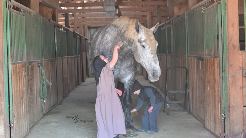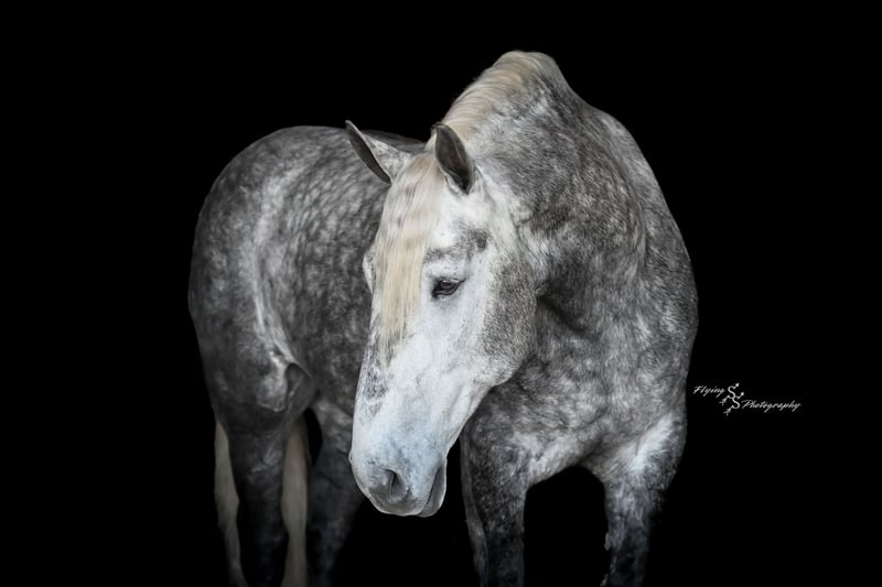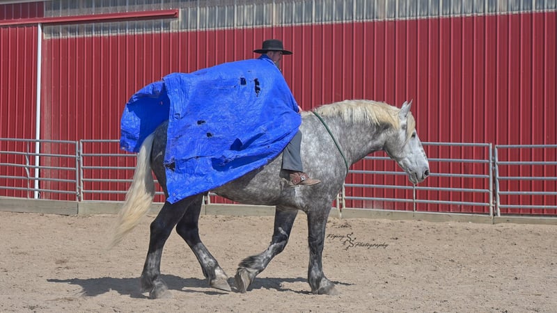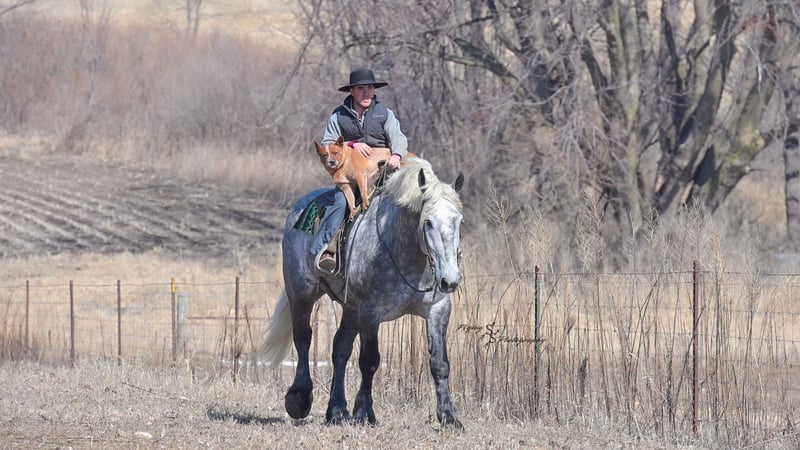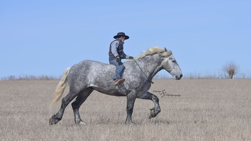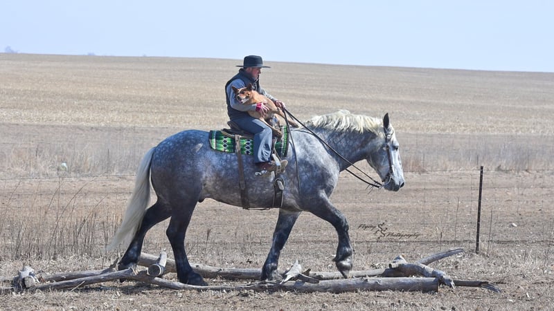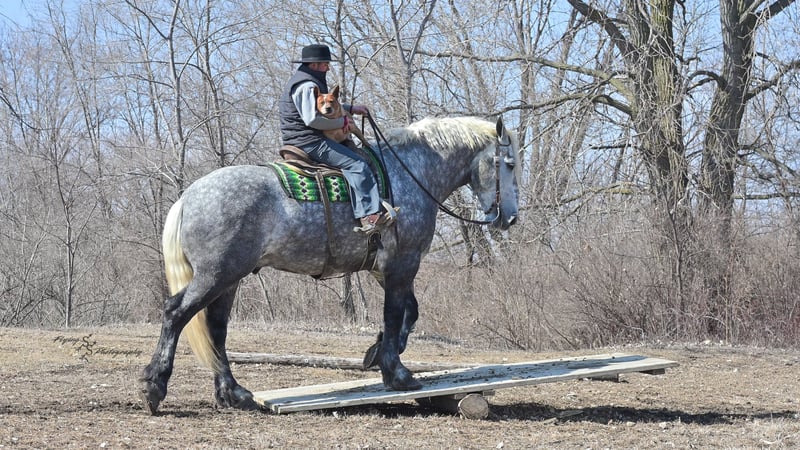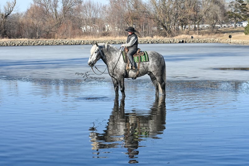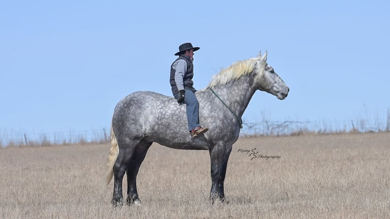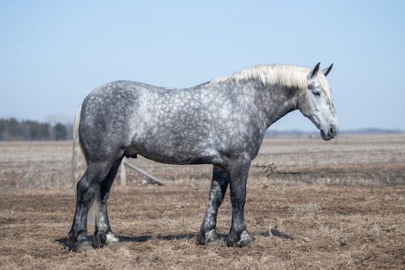 ONLINE AUCTION Place your bids at www.PlatinumEquineAuction.com Starting Bid $3500 Auction ends April 20th, 2025 Need a new saddle? Check out White Rock Saddles on our website or Facebook! Winston is a handsome dapple gray, 6 year old, registered percheron gelding. Our favorite thing about Winston is that he is incredibly safe. The phrase “Safety First” could quite literally be used as his slogan. Winston is a gentle giant, standing a staggering 18.1h tall! He will happily stand at a mounting block, or let you mount from a fence. Do not let Winson’s size intimidate you, he is a joy to handle, even for children! He is a blast to take out on the trails, easily stepping over down timber, crossing water, and going whatever direction you point him in. Winston is perfect for riders of any age and any level of experience. He is very honest on the ground as well as under saddle, admirably taking care of his rider, allowing you to place all of your trust in him. Winston rides western and bareback, bridled and bridleless, and is as comfortable under harness as he is under saddle. He drives absolute best and is incredibly safe, even for beginners or kids. Winston is easy to catch, saddle, bridle, bathe, shoe (easily picks up all 4 feet), and groom. He does great in a stall, as well as in a pasture with other horses. He rides around in an open field just as honest as he does in an arena. He is absolutely traffic safe, and is unphased by anything you will see riding down main street or a highway on a busy evening. Winston will lope in the correct lead, has a nice stop, stands quietly when cracking a bull whip or shooting a pistol, will walk through all of the obstacles, and stays solid even with time off. He is a great fit for the whole family. Winston is even loved by the farm dogs, who he will also allow to ride him! It is impossible to list everything we love about this gentle giant because the list is endless. He is truly a once in a lifetime gelding that we are proud to offer! Winston is current on Coggins, and also has a PPE on file. If you have any questions, or would like to meet him prior to the auction ending, please call Edwin Raber at 319-283-0616. Located in Fairbank, Iowa ONLINE AUCTION Place your bids at www.PlatinumEquineAuction.com Starting Bid $3500 Auction ends April 20th, 2025 Need a new saddle? Check out White Rock Saddles on our website or Facebook!