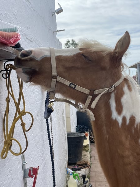 Bell puledra con pedigree italiano. Mamma Mimma (Reining / Barrel) Papà Gallo Bueno (Quarter Americano) La puledra vive con noi in un branco misto, stando fuori tutto l'anno, e viene portata in box con paddock solo di notte. È abituata all'ABC, maneggevole con il cavallo a capo, conosce il ferratura, i bambini, i cani, i gatti e le galline. È molto desiderosa di imparare, sveglia, con un buon desiderio di movimento e un trotto fantastico. Addestrata secondo il metodo Parelli, si fa portare in trailer/contenerne, va a passeggio da sola o in gruppo… investiamo molto tempo e amore nell’educazione dei nostri cavalli.