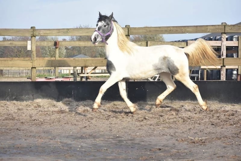 Lucky ist eine in den Niederlanden geborene Tinker/Pintomerrie, blauwbunt gefärbt und mit einer schönen Pony-typischen Körperhaltung. Sie ist derzeit etwa 1,47 m groß und wächst noch. Sie ist AES-registriert (Blaues Papier), ihre Mutter ist Tinka. Lucky ist eine junge Stute von 3 Jahren und befindet sich noch in der Entwicklungsphase. Wie bei jedem jungen Pferd ist es wichtig, dass sie weiterhin von einer erfahrenen Person begleitet wird, die konsequent im Bodenarbeit ist und genau weiß, was sie tut. Sie war ein Flaschenfohlen und ist daher auf der einen Seite sehr vertraut mit Menschen, auf der anderen Seite darf man sie jedoch nicht als gleichwertig ansehen, da sonst gefährliche Situationen entstehen können. Die Person, die die Bodenarbeit mit ihr macht, sollte sehr klar in ihren Anweisungen sein und die Grenzen deutlich setzen. Die Person, die auf ihr sitzt, hat es einfach mit einem sehr entspannten Tier :) Bei uns hat Lucky in letzter Zeit große Fortschritte gemacht. Sie wird mittlerweile geritten und wir sehen täglich, wie sie in Vertrauen und Entwicklung wächst. Sie beginnt, die Zusammenarbeit mit dem Menschen wirklich zu genießen, und blüht immer mehr in ihrer Arbeit auf. Unter dem Reiter ist sie absolut ruhig und bei uns sehr verkehrssicher! Lucky ist gesund, gecheckt und läuft mit der Herde mit, von der sie auch positiv lernt, insbesondere von den älteren Stuten. Der Vorbesitzer sagte über sie: „Lucky (Twilight), so nannte ich sie, habe ich in einer Phase gekauft, in der ich selbst von einem schweren Unfall genesen bin. Ich sah in ihr eine goldene Pony-Stute, aber aufgrund meiner eigenen Unsicherheit und Angst konnte ich ihr nicht geben, was sie brauchte. Mit Bodenarbeit ging es gut: Sie reagierte auf Handzeichen und war lernwillig, vor allem mit einem Leckerli als Belohnung. Aber sie braucht einen selbstbewussten Reiter, der sie mit Ruhe, Klarheit und Vertrauen begleitet. In den richtigen Händen ist sie wirklich ein tolles Pferd – und genau das hat sie verdient.“ Preis: 3850 €