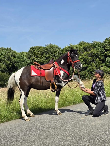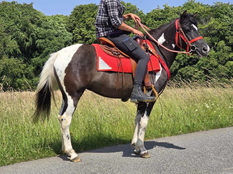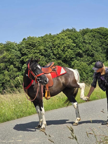 Leisure Mare "LEA" Pinto-Mix Mare for Leisure and Trail Riding* *Age*: 3 years, started under saddle and driven *Height*: approx. 1.36 m *Equipment*: E-pass, microchip, and vet check available *Price*: €4,900 *ridden and driven* A beautiful mare that is ideal for trail riding and leisure activities. She is a versatile leisure horse, well-suited for both English and Western riding. She has a wonderful, balanced temperament and feels comfortable in a herd, but is also well-adjusted in a stable. ### *What sets her apart:* - Used to open stable and herd living, box living is also no problem - Ideal for leisure and trail riders - Very balanced and uncomplicated to handle *Interested?* Feel free to call us at *0171-4001968* (daily from 8 AM to 8 PM). *Please no emails or WhatsApp, only calls!* *Additional Information:* - Equipment and transport can be organized at a low cost. - Our farm shop offers a small selection of used Western saddles. - *Installment payments are not possible.* *Customer Service:* - Every customer receives a contractually guaranteed *exchange right of three months.* - A trial ride with us is possible, so you can get to know your dream horse. For €35, you can ride, have it ridden out for you, go for a walk, or more. If desired, you can also test a second horse for €25. This amount will be deducted from the purchase price of a horse on the same day. *Special Features:* - If picked up immediately with a horse trailer, you will receive *a discount of €100.* - We conduct the sale with a transparent trial ride to ensure it is the right horse for you. *Legal:* - We are the sole and unrestricted owners of the images; the image rights belong to us. *Unauthorized use of the images is prohibited.* - Please note that this is a living horse. Our information is based on the impressions of the caretaker and does not constitute guaranteed characteristics. - Advertisements will be deleted immediately once the horses are sold. *Interested?* Feel free to call us at *0171-4001968* (daily from 8 AM to 8 PM). *Please no emails or WhatsApp, only calls!*