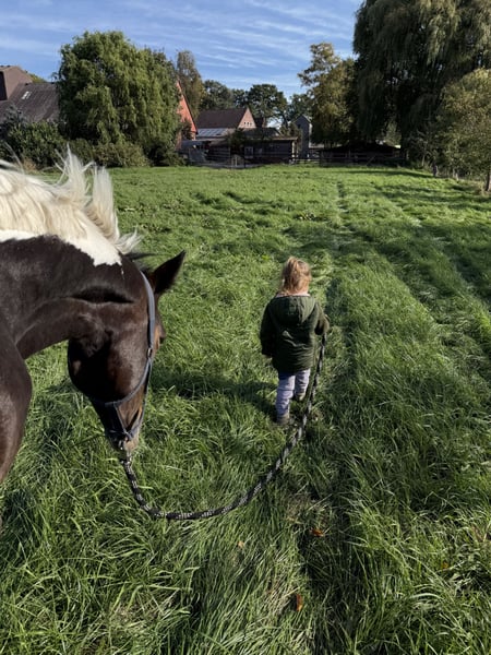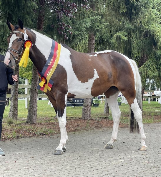 Unsere bildschöne Sunny ist am 17.05.2021 bei uns geboren und wächst seither artgerecht und familiär in einer kleinen gemischten Herde im Offenstall, direkt am Wohnhaus, auf. Im Sommer kennt sie 24h Weidegang. Sie ist gut sozialisiert und freundlich. Sunny ist erst seit kurzem unter dem Sattel und somit erst mit über 4 Jahren schonend angeritten. Sie ist motiviert und unerschrocken bei der Arbeit. Eine ansprechende Stute, die schnell lernt und stets gefallen möchte. Sie kennt auch das Freispringen, was sie ebenfalls mit Bravour meistert. Auch im täglichen Umgang ist sie ein Traum. Ob Straßenverkehr, große Maschinen, fremde Umgebung oder Kindertrubel - sie lässt sich nicht aus der Ruhe bringen. Kleine Kinder können sie problemlos putzen, führen, Schritt reiten und mit ihr rumtüddeln. Selbstverständlich ist sie entwurmt, geimpft, dem Zahnarzt vorgestellt und kennt den Hufschmied sowie Anhänger fahren. Sunny hat als Fohlen die Fohlenprämie und jetzt im Sommer die Verbandsprämie erhalten und ist demnach für die Zucht ebenfalls sehr interessant. Abstammung: Stilett (Samba-pa-ti x Ramalgo Z) aus einer Verb.Pr. Stute von Caspars Quick Star (Eurocommerce Berlin) x Nordstar (Night-Star). Der Vater "Stilett" kann Erfolge in Dressur und Springen bis zur Klasse M vorweisen. Bis ins hohe Alter war er der perfekte Lehrmeister für Kinder. Mittlerweile ist er leider verstorben, Sunny ist aus seinem letzten Jahrgang. Sie läuft Barhuf und ist aktuell 1,53 m groß. Da wir ihr zukünftig zeitlich leider nicht gerecht werden, ist sie bereit für den Einzug in ein tolles neues Zuhause. Wir sind uns sicher, dass sie ein wunderbarer Allrounder wird. Ein Reitvideo mit allen drei Grundgangarten liegt vor und wird bei ernsthaftem Interesse gerne zur Verfügung gestellt.