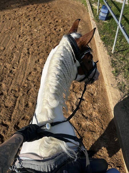Ich verkaufe meine liebevolle 6-jährige Pinto-Stute (ca. 146 cm), die im Dezember 2024 angeritten wurde. Sie zeigt sich dabei sehr lernfreudig, brav und motiviert. Alle drei Grundgangarten sind bereits ordentlich geritten, und sie hat sichtlich Spaß an der Arbeit. Im Gelände ist sie absolut zuverlässig – sie geht problemlos ins Gelände und zeigt sich dabei stets nervenstark und ausgeglichen. Charakter & Eignung: Ein richtiges Herzenspony, das gefallen möchte und mit dem man jeden Tag Freude hat. Ideal als Freizeitpony oder für ambitionierte Reiter, die ein junges Pferd weiter fördern möchten. Gesundheit & Hinweis: Leider hat sie Sommerekzem, weshalb sie deutlich günstiger abgegeben wird. Mit passender Pflege (Decke, Hautpflege) war sie diesen Sommer nahezu symptomfrei. Ansonsten ist sie topfit und gesund. Wichtig: Sie wird nur in allerbeste Hände abgegeben – Platz vor Preis! Optional kann passendes Zubehör mit erworben werden. Ein tolles Pony mit Zukunft, das Menschen sucht, die ihr genauso viel Freude schenken, wie sie zurückgibt Gerne anrufen oder per WhatsApp 015110204876 .