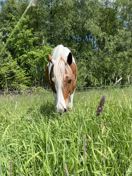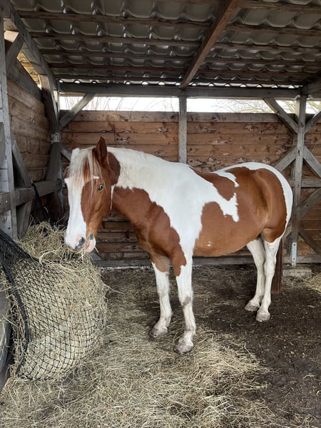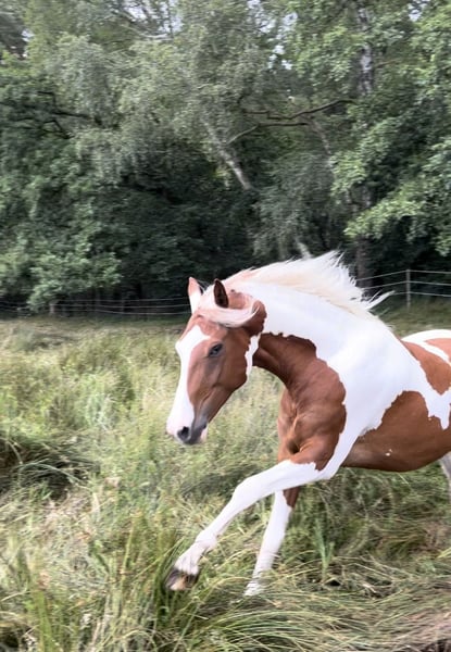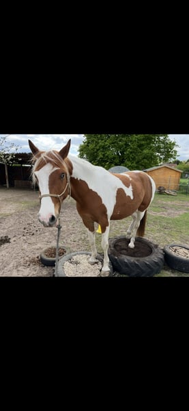 Hallo, ich suche nach einem neuen 5* zuhause für meinen Wallach. Er ist ein wunderschöner Pinto Wallach, Name Soulmates Nugget, 7,5 Jahre, Ca. 155 cm, Fuchsschecke. Seit er 2 Jahre alt ist, ist er in meinem Besitz. Kein Gewichtsträger, max. 65 Kilo. Er hat bis jetzt immer in einem Offenstall gestanden, in gemischten Gruppen und in einer reinen Wallachherde. Ich glaube eine reine Wallachherde wäre entspannter für ihn. Er läuft Barhuf und benötigt 24/7 Heu. Ich habe auch das ganze Jahr über Rauffutter angeboten. Er neigt zu einem empfindlichen Magen, was Stress und Fresspausen betrifft. Im Sommer steht er auch 24/7 auf der Sommerweide. Das verträgt er gut und ist da am glücklichsten. Er bewegt sich gerne. Toll wäre auch eine große Winterweide oder ein Trail. Er wird aktuell mit Glücksrad und Pad geritten. Ich habe leider keinen passenden Sattel. Auf dem Platz kann ich ihn schwer motivieren. Das Gelände liebt er, kennt es aber nur in der Gruppe ins Gelände zu gehen. Er war mit 4 Jahren im Beritt. Der Schwerpunkt war Horsemanship Parelli. Ich reite ihn aktuell aber Englisch. Er ist schlau und möchte beschäftigt werden. Er benötigt eine Bezugsperson die ihm viel Sicherheit vermittelt und Durchsetzungsvermögen besitzt. Er ist noch ein junges Pferd, der noch einiges lernen muss. Daher kein Anfänger- oder Wiedereinsteigerpferd. Ich würde ihn als sensibel, neugierig, schlau, verspielt und ranghoch beschreiben. Bei ernsthaften Interesse gerne schreiben. Ich würde mich freuen zu hören wie er stehen würde etc. Es handelt sich nicht um einen Notverkauf und der Verkauf wird aus gesundheitlichen Gründen meinerseits in Erwägung gezogen. Röntgenbilder vom Rücken, Vorderhufen und hinteren Sprunggelenken liegen aus 09.2025 vor. Die habe ich für mich in einem Check Up anfertigen lassen. Platz vor Preis, wenn es ein tolles Zuhause ist und eine kompetente Person. Liebe Grüße!