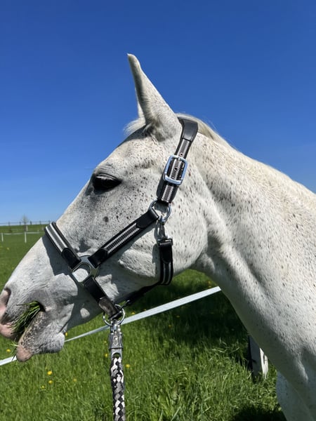 Diese wunderschöne Fliegenschimmel-Stute besticht nicht nur durch ihre schöne Optik, sondern vor allem durch ihr außergewöhnlich sanftmütiges und geduldiges Wesen. Sie ist stets kopfklar, ausgeglichen, aufgeweckt und vermittelt ihrem Reiter jederzeit ein sicheres Gefühl. Durch ihre Erfahrung als Schulpferd bringt sie viel Routine und Gelassenheit mit. In den vergangenen drei Jahren wurde sie ausschließlich von zwei Reitern geritten und täglich gearbeitet – entweder unter dem Sattel oder an der Longe. Dabei wurde sie regelmäßig mehrmals pro Woche im Unterricht gefördert und verfügt über eine solide, gute dressurmäßige Grundausbildung. Sie ist leicht zu reiten, im Umgang brav sowie menschenbezogen. Besonders hervorzuheben ist ihre Zuverlässigkeit: Sie zeigt keinerlei Unarten wie Bocken o. Ä. und eignet sich daher sehr gut für Anfänger oder Wiedereinsteiger. Aufgrund von Nachwuchs in der Familie schaffen wir es leider nicht mehr, ihr genug Zeit zu widmen. Wir wünschen uns für diese besondere Stute ein liebevolles Zuhause, in dem sie weiterhin wertgeschätzt und sinnvoll beschäftigt wird. Bei ernsthaftem Interesse freuen wir uns über eine persönliche Nachricht.