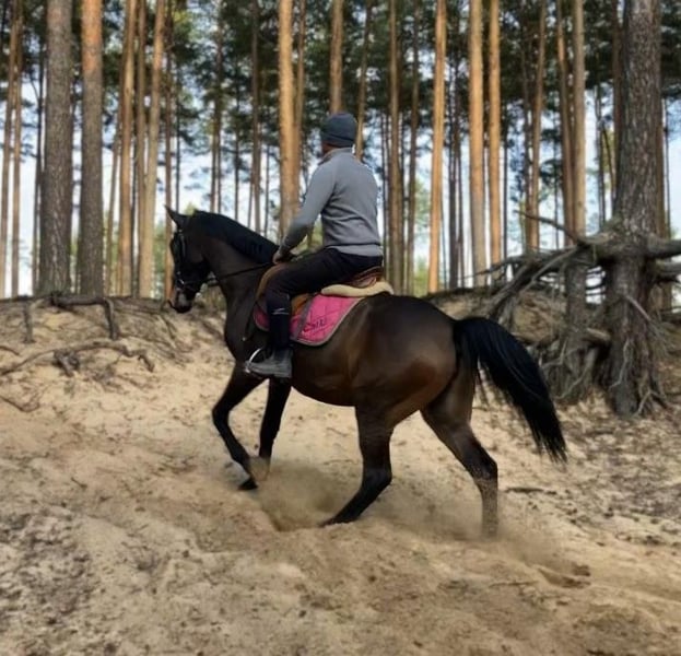 Kiara ist eine dunkelbraune Stute mit ruhigem und unkompliziertem Wesen. Sie ist angeritten und läuft alle drei Grundgangarten auf dem Platz. Im Gelände geht sie sowohl alleine als auch in der Gruppe ohne große Aufregung. Nutztiere und Maschinen kennt sie bereits und bleibt dabei gelassen. Beim Schmied und Tierarzt macht sie ordentlich mit. In der Herde ist sie unkompliziert und versteht sich mit anderen Pferden. Sie mag den Kontakt zum Menschen, lässt sich gerne putzen und zeigt sich auch im Umgang mit Kindern freundlich. Eine passende Stute für Freizeit und Familie, die sich weiter gut entwickeln wird. - Die Stute befindet sich in Polen, ca. 70 km von Görlitz entfernt. (40 Minuten) - Transport ist möglich.
