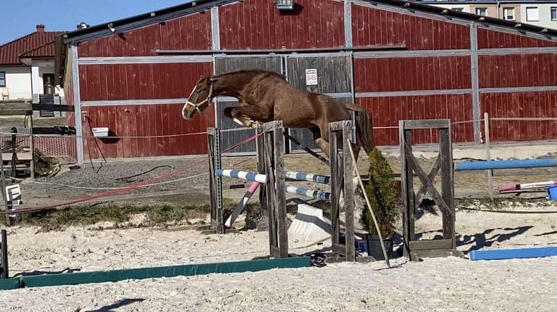 ✨ Exceptional Opportunity! ✨ For sale: a promising mare with stunning looks and an outstanding temperament. Kora is a horse with great potential, providing pure riding pleasure from the very first moments. She is incredibly rideable, brave, and has a very good mind. Gentle, eager to cooperate, and always engaged under saddle – she’s one of those horses you simply enjoy riding. Owned by the same person since she was 2.5 years old, ridden exclusively by professionals, which makes her sensitive to aids, responsive to the rider’s seat, and she has never been “spoiled.” She is a very clean, high-quality prospect for further training and development. At the beginning of 2025, she foaled her first foal, and she is now in regular show jumping training, having started her first competitions after a break. In the arena, she is precise, brave, well-grounded, and has excellent technique. At competitions, she behaves as if she’s at home – calm, focused, despite her still limited experience. Before her pregnancy, she participated in competitions and off-site training suitable for her young age. She has always been trained without rush or sales pressure. She is a safe horse, free of spooks or undesirable behaviors. Brave in the terrain – she walks alone just as confidently as with other horses. She is not tall – approximately 163–164 cm, but fully makes up for it with heart and quality. Perfect for a smaller rider who is looking for a sensitive horse that responds well to aids and provides a strong sense of control. Healthy. She underwent a TUV exam at age 4 – perfect, without any faults. She is easy to transport, shoe, clip, and handle with the veterinarian. Sire: Zangersheide Corleone Z. I am looking for the best possible home for her – I am selling her with a truly heavy heart, only due to a change in my personal circumstances and moving abroad. The price will increase as she progresses in training and competitions. Possibility of arranging a paid trial ride. This is a horse that has it all: character, mind, quality, and heart for jumping. Serious inquiries are welcome to contact me via WhatsApp. I am happy to send videos and more information.