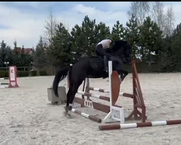 Z bólem serca, na sprzedaż piękny polski koń szlachetny półkrwi – wałach urodzony 16.10.2019 roku. Wzrost ok. 165 cm. Przyszłościowy, doskonały kompan do skoków, z dużym potencjałem na więcej i świetną budową. Idealny dla jeźdźca poszukującego konia o eleganckim wyglądzie i z temperamentem. A tak mówiąc o nim troszkę więcej ;) Cyprian-N, bo tak ma na imię, poszukuje nowego kochającego domu. Wałaszek maści karej o nierealnie błyszczącej sierści, w której letniej okrywie widać pojedyncze białe włoski, oraz o gęstej grzywie. Cyprian jest po ogierze Ulco rasy KWPN, co sprawia, że jest półbratem ogiera M-Komandor! Pracuję z Cyprianem od listopada 2023 r. od podstaw. Był całkowicie surowy i nie wiem, co się z nim wcześniej działo, ponieważ poprzedni właściciele nie są wpisani w paszport, a miał ich sporo w swoim krótkim życiu. Został przeze mnie zajeżdżony w marcu 2024 r., powoli wdrażając go w pracę pod siodłem. Wszystko było robione powoli, zgodnie z dobrem i wolą konia. Cyprian jest moją własnością od października 2024 r. Lecz krótko po jego kupnie miałam wypadek, który sprawił, że koń miał przerwę aż do stycznia 2025 r. A czas ten spędził na padokach i na spacerkach w ręku do lasu. Po ponownym wdrożeniu do pracy koń nie sprawiał problemów mimo tego, jak długo stał. Od tego momentu aż do września chodził regularnie i był przygotowywany pod kątem zawodów. Teraz chodzi tylko trzy razy w tygodniu przez moje nawracające dolegliwości związane z dawnym wypadkiem. Z ziemi typ „miśka”. Uwielbia się tulić, być głaskany i dostawać buziaki. Chętny do pracy z ziemi, jak i z siodła, choć czasem ma humorki i pokazuje różki. Nie lubi się nudzić podczas pracy. Koń dla jednego jeźdźca i osoby doświadczonej. (Nada się dla nastolatka jak i osoby dorosłej; dzieciom i rekreacji z góry dziękujemy!! :3). Koń do przodu, z wyraźnym temperamentem, który wie, czego chce i gdzie są jego granice. Jednakże gdy zgra się już z jeźdźcem – jazda na nim staje się czystą przyjemnością i fajną zabawą. Cyprian dalej się uczy, co wiąże się z tym, że popełnia błędy i jest trudny, stąd potrzebuje kogoś dobrze jeżdżącego. Ale w zamian jest świetnym nauczycielem pokory i cierpliwości. Szybko pochłania wiedzę i nowe zadania czy challenge nie są dla niego problemem przy dobrym prowadzeniu. Ogromne serce do skoków – uwielbia to robić tak samo bardzo, jak pędzić! Nie ponosi w terenach. Co umie Cyprian? Naskakany na parkurach 90 cm, pojedyncze przeszkody 100 cm, z potencjałem na więcej. Umie lotne zmiany nogi w galopie, bez drąga jak i na drągu. Jeździ na głos i dosiad. Chodzi na lonży. Grzeczny przy weterynarzu i kowalu. Sprzedaż Cypriana jest dla mnie ogromnym ciosem poniżej pasa; decyzja jest nagła i nieplanowana, ale kierowana priorytetem, jakim jest dobro konia. Mój wypadek sprawił, że aż do teraz męczę się z problemami z obręczą barkową, kręgosłupem i błędnikiem, co odbija się na mojej jeździe, przez co też na konia (widać to po nagraniach). Zmusza mnie to do całkowitego zrezygnowania z jeździectwa, a nie mam możliwości zapewnić mu odpowiedniej ilości ruchu i treningów, by prawidłowo się rozwijał z racji młodego wieku konia i jego niezwykłej energiczności. Szukam dla niego nowego, kochającego domu, gdzie będzie miał możliwość dalej się rozwijać i – kto wie – może kiedyś podbijać parkury! Ale oczywiście nie kosztem jego dobra. Cyprian jest koniem, który w zamian za cierpliwość i wysłuchanie jego potrzeb oddaje całe serce i poświęcenie, więc oczekuję tego samego od jego nowego właściciela. Cyprian ma małego nakostniaka na nodze, odkąd do mnie trafił, jednak weterynarz dał zielone światło do trenowania i skoków. Nie sprawia mu to bólu — jest to jedynie wada estetyczna, niezbyt mocno widoczna, i można się jej pozbyć. Oprócz tego jest w pełni zdrowy i zaczepialski, kocha atencję człowieka. Koń do nowego domu zabierze ze sobą cały jego sprzęt, bez dodatkowych opłat. A po upewnieniu się, że koń trafia w dobre ręce – cena do dość mocnej negocjacji! Zapraszamy oczywiście do kontaktu osoby zainteresowane oraz do umówienia się na jazdę próbną czy obejrzenia konia na żywo ;) Jestem skora do rozmowy i nie mam nic do ukrycia. Preferuję kontakt poprzez sms z racji że często nie mam czasu odebrać telefonu.