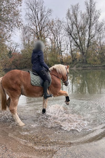 Zum Verkauf steht ein 8-jähriger Wallach, polnisches Mischblut, mit klarem Charakter und hoher Lernbereitschaft. Ausbildung & Nutzung Der Wallach wurde mit 4,5 Jahren sorgfältig in den Schulbetrieb eingeführt. Vor zwei Jahren habe ich ihn privat übernommen, da er sich für den Schulbetrieb als zu charakterstark erwiesen hat. In privater Haltung konnte er sich entsprechend weiterentwickeln und sein Potenzial zeigen. Er lässt sich in allen drei Grundgangarten sehr gut reiten, ist sehr geländeerfahren und zeigt sich dort besonders motiviert und zuverlässig. Zusätzlich wurde er bereits auf Vereinsturnieren vorgestellt und absolvierte leichte Dressuraufgaben. Aufgrund seines kompakten Körperbaus eignet er sich nicht als (Leistungs-) Springpferd – dennoch hat er Spaß am gelegentlichen Springen (über vergleichsweise niedrige Hindernisse) und zeigt sich auch hierbei sehr lernwillig. Ein erfahrener, ruhiger Reiter wird mit ihm viel Freude haben – vor allem bei ausgedehnten Geländeritten. Charakter & Umgang Im täglichen Umgang ist er selbstbewusst und aufmerksam. Er orientiert sich gut an Menschen mit klarer, ruhiger Führung und baut zu Bezugspersonen, die ihm mit Konsequenz und Verständnis begegnen, schnell Vertrauen und Respekt auf. Aktuell wird er beim Führen mit Trense gehandhabt, da er gerne eigenständig mitdenkt und insbesondere in Richtung Koppel sehr motiviert ist. Haltung Der Wallach ist sozial gut verträglich und steht derzeit in einer Wallachherde. Er wünscht sich ein Zuhause mit viel Freilauf und artgerechter Haltung, in dem auf seine Persönlichkeit eingegangen wird. Gesundheit Er ist kerngesund und wurde stets regelmäßig geimpft, entwurmt sowie osteopathisch behandelt. Die zwei Vorderhufe sind beschlagen, zurzeit mit Schneegrips, damit er möglichst bei jedem Wetter draußen sein kann. Abgabe Die Abgabe erfolgt ausschließlich aus Zeitgründen. Ein gutes, passendes Zuhause ist mir wichtiger als der Preis, dennoch kann er nicht verschenkt werden. Preis: 7.500 € VB Zubehör: kann bei Interesse günstig mit übernommen werden Bei ernsthaftem Interesse freue ich mich über eine aussagekräftige Nachricht. Weitere Informationen gern im persönlichen Kontakt.