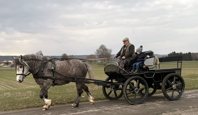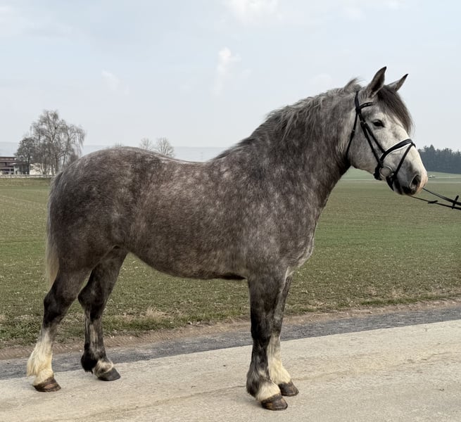 Very friendly and exceptionally well-balanced mare, trained in harness driving and riding. She is familiar with outdoor terrain, indoor arenas, and road traffic, and remains calm and obedient in all situations.