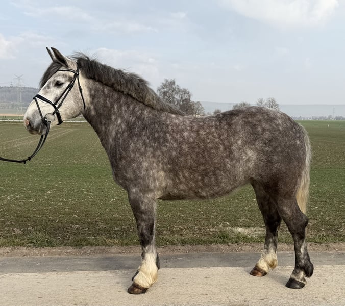 Seh freundliche und super ausgeglichene Stute die ein ,- zweispännig gefahren und geritten ist. Sie kennt Gelände, Halle sowie den Straßenverkehr und zeigt Sichtungen allen Situationen gelassen und brav