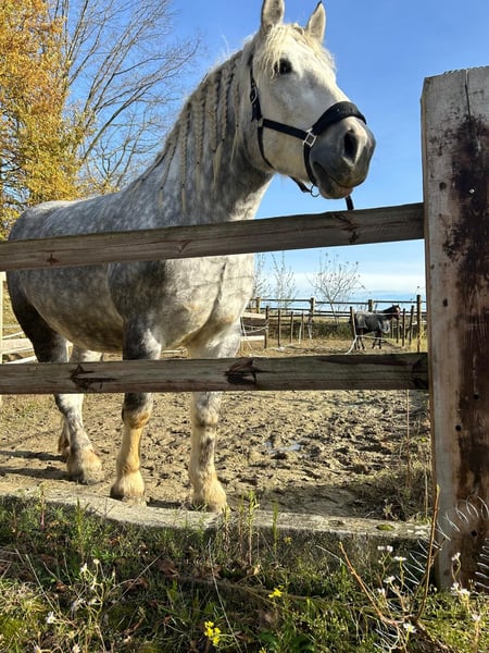 Verkaufe Polnisches Kaltblut (tragend) – Schimmelstute, geb. 2021 Zum Verkauf steht eine wunderschöne Polnische Kaltblut-Stute, die im Jahr 2021 geboren wurde. Da Sie noch jung ist, würden wir Sie als gut angeritten bezeichnen. Sie kennt longieren, Hufschmied und ist verladefromm. Achtung! Frieda ist Tragend! Das Fohlen soll voraussichtlich im Mai 2026 auf die Welt kommen. Der Vater ist ein Paint Horse, da es ein Unfall war, haben wir keine Papiere oder Auskünfte über den Vater. Gerne mehr im persönlichen Gespräch. Charakteristisch würden wir Frieda als freundlich und ausgeglichen bezeichnen. Allerdings kommt manchmal etwas das Stutige Verhalten durch, wobei Sie nie böse ist. Frieda wurde bei dem Vorbesitzer auch gefahren, wir selber haben dies aber nicht ausprobiert. Wir könnten uns Sie gut als Fahr Pferd, Freizeitpferd aber auch in Dressur oder Western gut vorstellen. Von daher ist Sie vielseitig einsetzbar. Momentan befindet sich Frieda in professionellen Training, daher wird sie momentan weiter fleißig ausgebildet, aber dadurch das Sie tragend ist momentan nicht mehr geritten, nur von Boden aus gearbeitet. Mit Frieda hat man bei guter Ausbildung, einen tollen Partner an seiner Seite! Sie ist gesund und hatte in unserem Besitz keinerlei gesundheitlichen Probleme. Ein Probereiten ist momentan nicht möglich, dadurch das Sie tragend ist. Wir haben aber einige Videos von ihr. Eine AKU ist jederzeit bei Kostenübernahme möglich.