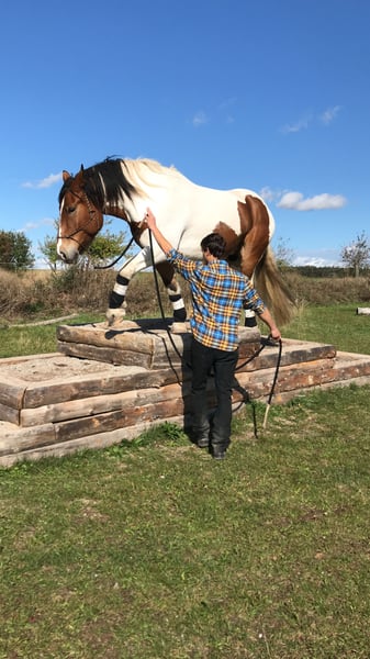 Wir suchen für unseren polnischen Kaltblut-Wallach einen neuen Wirkungskreis. Leider werden wir seinem Potential zeitlich nicht gerecht und hoffen auf diesem Weg ein passendes 5 Sterne zu Hause zu finden. Juri ist ein Schecke mit toller Zeichnung und einem liebevollen Wesen und viel Potenzial für den ambitionierten Freizeitreiter. Er ist dem Menschen gegenüber aufgeschlossen und man wird von Weiten immer mit einem Wiehern begrüßt. Steckbrief Alter: 12 Jahre Größe: 160 cm Rasse: Polnisches Kaltblut mit polnischen Abstammungspapieren Farbe: Schecke Eignung: Kein Anfängerpferd Haltung: kennt Offenstall- und Boxenhaltung Ausbildung & Einsatzbereich: Juri wird freizeitmäßig geritten und bringt dabei auch auf dem Reitplatz Dressurpotenzial mit (auch wenn man es seiner Statur nicht ansieht). Gesundheit & Pflegezustand Juri ist schmiede- und verladefromm, läuft barhuf und ist regelmäßig geimpft sowie entwurmt. PSSM liegt bei ihm NICHT vor. Er hat eine leichte Mauke an den Hinterbeinen – rassetypisch und bereits seit jungen Jahren vorhanden. Diese breitet sich nicht aus und beeinträchtigt ihn in keiner Weise. Zudem hat Juri eine Milbenallergie (Laborbefunde liegen vor). In den Übergangszeiten und im Sommer kann es dadurch zu Juckreiz, vor allem an Mähne und Bauchnabel, kommen. Dieser ist gut händelbar und lässt sich mit einer Creme, die alle zwei Tage aufgetragen wird, zuverlässig in den Griff bekommen. Im Sommer ist außerdem das Tragen einer Fliegendecke mit enganliegendem Bauchlatz wichtig, um zusätzlichen Juckreiz durch Insekten zu vermeiden. Beim Vorbesitzer zeigte er hier keine Problematik, vielleicht kann dies durch einen Stallwechsel behoben werden. Osteopathisch untersucht, keinerlei Gelenksprobleme. Beschreibung Juri liebt Ausritte – sowohl in der Gruppe als auch alleine. Im Gelände ist er motiviert und keineswegs triebig. Er ist jedoch kein Anfängerpferd, da er seine Umwelt stets aufmerksam wahrnimmt und sich auch mal erschrecken kann. Dabei bleibt er jederzeit kontrollierbar und ist kein Durchgänger. Der Reiter sollte souverän sein und sich nicht von seinen gelegentlichen „fünf Minuten“ beeindrucken lassen, wenn er auf dem Ausritt gerne etwas flotter unterwegs wäre. Juri ist ein sehr liebevolles, sensibles und loyales Pferd, das eine ruhige und sichere Hand benötigt. Er reagiert stark auf die Stimmung und Körpersprache seines Reiters: Ist man selbst entspannt, ist er es auch – bei Anspannung spiegelt er diese unmittelbar wider. Auf dem Platz zeigt Juri eine schnelle Auffassungsgabe, lernt ausgesprochen zügig und bietet von sich aus Lektionen an. Mit feiner Hand und am langen Zügel geritten, reagiert er hervorragend auf Gewichtsverlagerung und Schenkelhilfen. Er ist ein Pferd, das Beschäftigung, Aufmerksamkeit und regelmäßige Bewegung braucht – für ein- bis zweimal Reiten pro Woche ist er daher nicht geeignet. Wanderritte sowie Trail-Parcours kennt er bereits. Auch Traktoren, Zugmaschinen und verschiedene Tiere sind ihm vertraut; in dieser Hinsicht zeigt er sich unerschrocken. Zubehör Der maßangefertigter Westernsattel kann gerne miterworben werden (1.800 € inkl. Lammfellpad und Trense). Der Sattel ist 3,5 Jahre alt und wurde speziell angepasst, da kein Standardsattel passend war. Weiteres Zubehör wie verschiedene Decken kann ebenfalls erworben werden. Um Reittourismus vorzubeugen, berechnen wir 40 € pro Person für jedes Probereiten, Vorreiten oder Geländeritt. Dieser Betrag wird beim Kauf selbstverständlich angerechnet. Wir bitten ausschließlich um ernst gemeinte und seriöse Anfragen mit einer kurzen, aussagekräftigen Vorstellung. Für Juri suchen wir einen absoluten Bestplatz. Es besteht keinerlei Zeitdruck. Juri wird nicht schnell oder „an den Erstbesten“ verkauft. Uns ist es wichtig, die zukünftigen Besitzer in Ruhe kennenzulernen.
