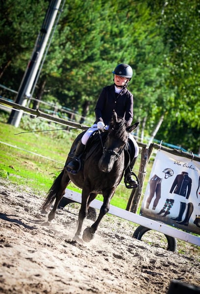 Een pony met uitgebreide sportervaring – ze heeft deelgenomen aan DiM-wedstrijden en heeft meegedaan aan de Poolse Indoor Kampioenschappen. Ze rijdt regelmatig in de A2-klasse en behaalt vele succesvolle rondes op 85–95 cm, meestal met zeer goede stijlpunten van 1 tot 1,5 punt. Momenteel wordt ze vooral getraind voor springen, maar ze zou ook uitstekend geschikt zijn voor eventing. Ze is zeer goed te hanteren tijdens alle verzorging en omgang, en gemakkelijk te vervoeren. Onder het zadel is ze comfortabel, bereidwillig en coöperatief – ze loopt niet uit, springt vol vertrouwen en blijft geconcentreerd zonder door afleidingen te worden afgeleid. Ze combineert kracht en moed met een rustige instelling; ze is betrouwbaar en veilig in open terrein. Ze is gezond, zonder geschiedenis van blessures, en is voor- en achterbeslagen. Ze is perfect voor een kind dat wil beginnen met wedstrijden en geleidelijk wil doorgroeien naar hogere niveaus. Locatie: Kanie, Mazovië Contact: +48 508 016 090 – graag een bericht sturen via SMS/WhatsApp