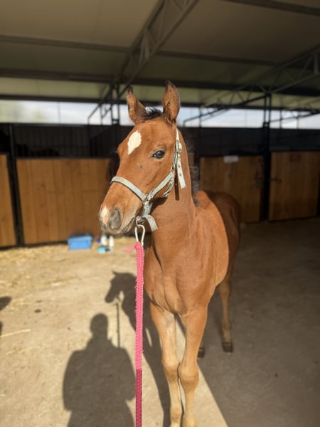 For sale: a remarkable, current-year colt – Ventorino (born July 24, 2025). WORLD-CLASS GENETICS: Ventorino’s pedigree is a unique blend of jumping power and Trakehner nobility. SIRE: Vincento des Forets, son of Holstein’s Calvaro Z (Silver at the Sydney Olympics, 1.60m level). Calvaro Z (Caletto I x Capitol I), competed under John Whitaker and Jos Lansink, was among the top in the world (competing in Aachen, Hickstead, London). This guarantees strength and jumping ability. DAM: Daughter of the licensed stallion Klasyk out of mare Cyntia (by Hamlet Go). The dam line is a solid foundation of Polish and German breeding: Klasik carries the blood of the “Stallion of the Century” – Ramiro Z (winner of Power Jump and Nations Cup competitions). Granddam Cyntia is by Hamlet Go, son of the Trakehner Turnus. Turnus’s sire was the legendary Zauberklang – a stallion renowned for exceptional movement and beauty. Thanks to the presence of Trakehner blood (Zauberklang) combined with Holstein strength (Calvaro Z, Ramiro Z), Ventorino is a modern horse: well-built, yet flexible and noble. Conformation and Movement: A large, well-proportioned foal with a correct foundation (target height approx. 16.1–17.2 hh). Characterized by spacious, elastic movement. Temperament and Handling (Top Head): The colt is superbly socialized – a major asset for the future owner: • Exemplary at the blacksmith (stands well for all legs). • Walks on a lead, stands calmly tied. • Knows the wash, water, and grooming routines. • Transport: Easy to load and travel with a trailer. • Respects the electric fence, raised on pastures in a herd. Pickup: Available in January (after weaning). The foal is independent, eats hay and feed. Healthy, well-cared for, directly from the breeder. Full pedigree: https://www.horsetelex.com/horses/pedigree/2721760/ventorino Location: Stable near Gniezno, Greater Poland Voivodeship. Videos of the foal in motion can be sent via WhatsApp. Price: negotiable.