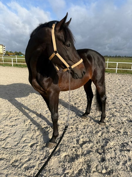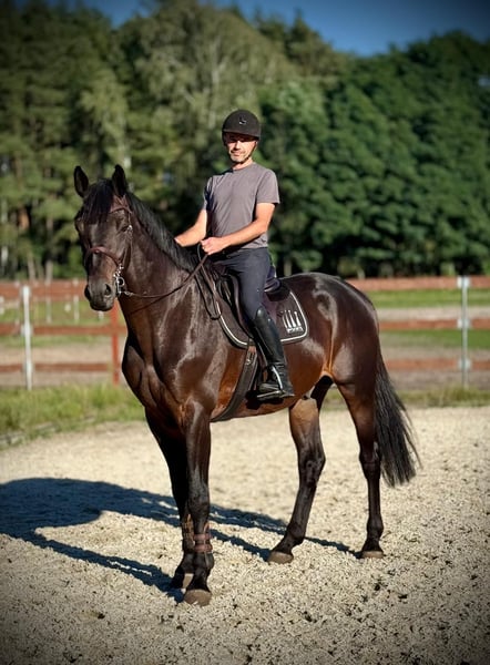 Fünfjährige, große und sehr kräftige Hengst, der in Springprüfungen bis 120 cm startet. Ausgezeichnete Springfähigkeiten. Gesund, sicher im Umgang und nicht beißig.