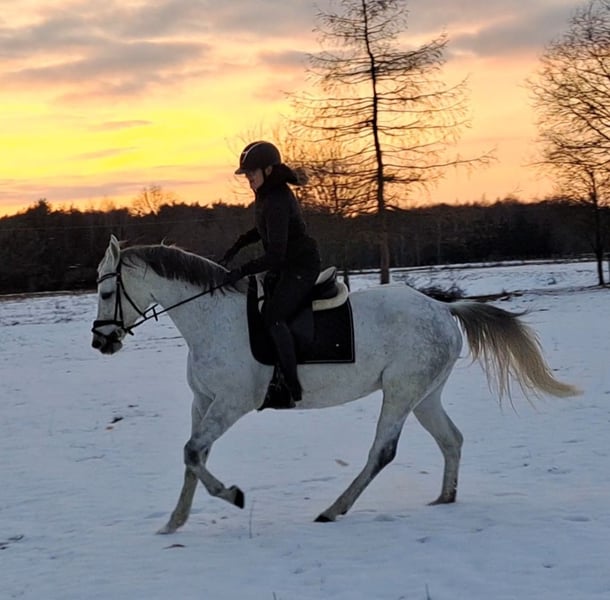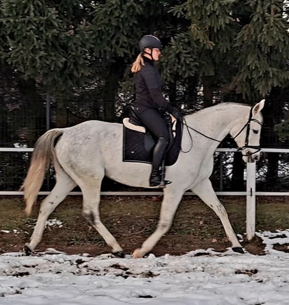 Beautiful mare with excellent conformation. Cepelia, a Polish sport horse. 9 years old and approximately 1.63 m (16.1 hh). Registered broodmare (two full brothers of Cepelia have been licensed). She is very calm. She has a lot of patience when groomed. In handling, she is absolutely gentle, without any bad habits. Cepelia is perfect for advanced recreational riding and also suitable for small competitions. She has excellent conformation and is very light to ride. Under saddle, she is attentive and motivated, with a relaxed walk. She always remains under control. She is herd-friendly, healthy, and free of any bad habits. Videos available. Transport possible. Location: Lusatia near Görlitz. Price may change with further training.