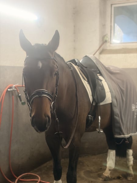 An experienced mare, perfect for a child! A very brave 10-year-old mare, perfect for introducing an amateur or child to the sport! Very easy to ride and pleasant. She's not afraid of anything, always wants to be on the other side of the obstacle. Sandro Boy x Reval x Colorado 167cm She competed in show jumping at 110 cm with an amateur and jumped 120 cm at home. *In one hand for 5 years! Healthy and injury-free. X-rays available. Easy to transport, blacksmith, etc. Transport possible in UE IG siekiercy_horses