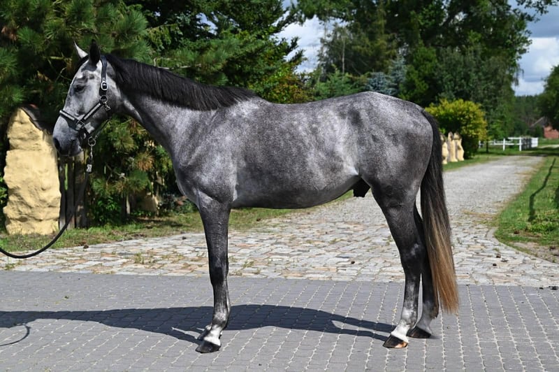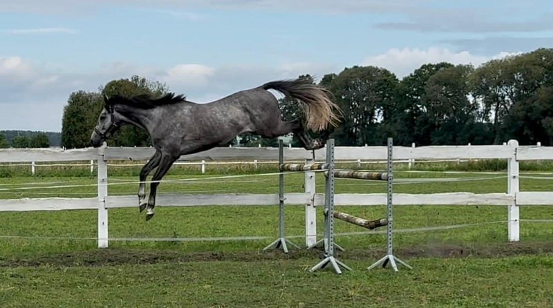 Uroczy młody ogier z najwyższej półki rodowodowej poszukuje nowego, dobrego domu. Wysoki, poprawnej budowy ciała, z idealnymi nogami i dobrymi kopytami. Bardzo dobrze porusza się na trzech chodach. Erdon to bardzo miły i łatwy w obsłudze koń, o spokojnym i przyjacielskim charakterze. Jego światowej klasy pochodzenie czyni go wyjątkowym kandydatem do dużego sportu. Ma ogromny potencjał i doskonały styl skokowy. Co najmniej 10 jego rodzeństw startowało na poziomie 160 cm, 5 na poziomie 150 cm, 33 na poziomie 140/145 cm. Wychował się na dużych pastwiskach w grupie innych młodych koni. Miał czas na zdrowy rozwój i dojrzewanie. Przyjazny wobec innych koni. Codziennie na dużych padokach. Obecnie ma 173/4 cm, ostatecznie około 175+ cm. Powoli rozpoczął trening. Do tej pory zna siodło i jeźdźca, ale nic więcej z powodu braku czasu właściciela. Dlatego cena jest bardzo atrakcyjna jak na tę jakość konia! Cena będzie rosła wraz z poziomem treningu. Koń jest w 100% zdrowy, bez nałogów i złych nawyków. Niedawno wykonano mu RAY (7/2025) i jest CZYSTY. Zaszczepiony, odrobaczony i aktualnie odstawiony. Zlokalizowany 50 km od granicy PL/DE. Filmy i więcej informacji na WhatsApp +48 513 179 245. Transport można zorganizować.