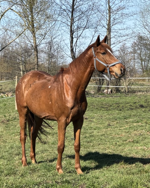 Ding Dong IPO, un semental de 6 años de gran nobleza y estructura delicada, con una altura de 163-164 cm. Ideal para jinetes jóvenes o amateurs que deseen desarrollarse junto a él. Joven en edad y aún más joven en experiencia, montable, equilibrado y muy dispuesto a saltar. Para quienes buscan un caballo agradable, no explotado, con potencial y orientado a un crecimiento conjunto. Criado de manera saludable, en excelente condición física y resistencia. Con experiencia en competición hasta 105 cm y entrenamiento hasta 120 cm. No dudes en contactarnos. Actualmente, el caballo se encuentra en entrenamiento cerca de Poznań.