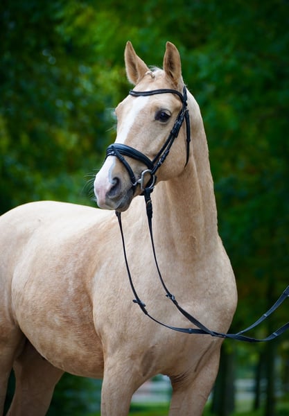 This stunning Palomino gelding is looking for a new, loving home due to personal circumstances. He immediately stands out with his charisma, friendly nature, and harmonious appearance. Details & Training: - 6 years old, 16.1 hh - Dressage & jumping class A, currently only moderately in training - Versatile, further training needed - Recent X-rays show no findings Temperament: - Well-behaved and easy to handle - Friendly with mares and geldings - Farrier-friendly - Loads without issues - Hacks out alone A wonderful horse that clearly demonstrates potential with proper support and encouragement. Videos under saddle available upon request.