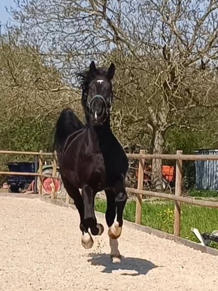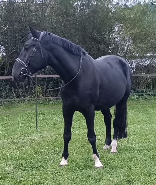 Polish Sport Horse Gelding – Born in 2020, Black Roan For sale is an elegant and versatile Polish black roan gelding. Born in 2020, he impresses with his striking appearance and beautiful movement. Standing at 172 cm (16.1 hh), he is the perfect size for tall riders. Baroso is a trained driving horse, suitable for both single and pair harness. He consistently shows motivation in work and does not tire easily. Although he has not yet been backed, he demonstrates good natural gaits. Due to scar tissue on his chest from previous sakroids, which has already been reduced with ointment, he is offered at a significantly reduced price. If interested or for further information, please feel free to contact me. Viewing is possible by arrangement.