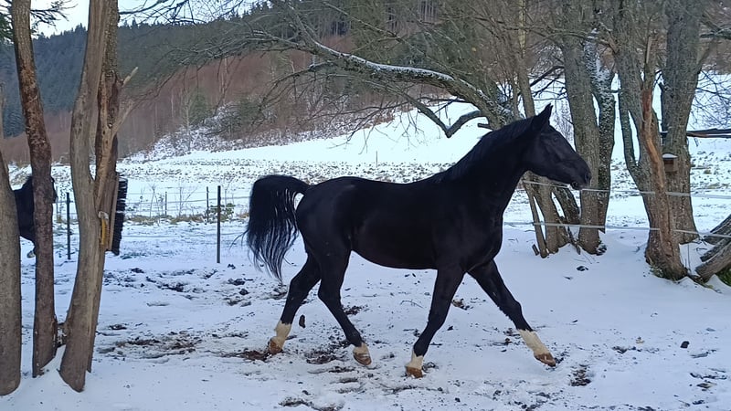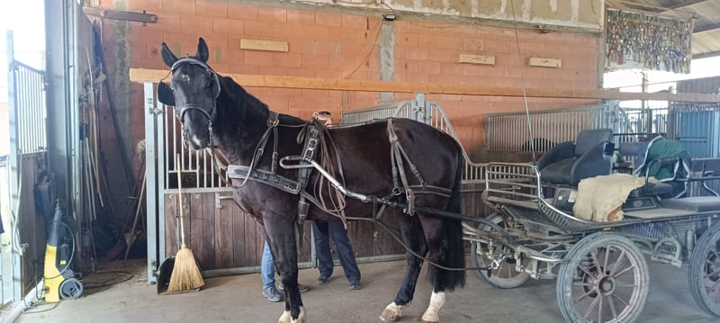 Verkaufe polnisches Sportpferd – Wallach, geb. 2020, Rappe Zum Verkauf steht ein eleganter und vielseitiger polnischer Rapp-Wallach. Geboren im Jahr 2020 überzeugt er durch seine beeindruckende Erscheinung und seine schönen Gänge. Mit einem Stockmaß von 172 cm bietet er die ideale Größe für große Reiter. Baroso ist ausgebildetes Fahrpferd, ein- und zweispännig. Er zeigt sich in der Arbeit stets motiviert und wird auch nicht so schnell müde. Er ist noch nicht eingeritten, zeigt aber gute GGA, läßt brav aufsteigen und sich führen. Aufgrund von Sakroiden auf der Brust, die aber bereits durch Behandlung mit einer Salbe kleiner wurden, wird er deutlich unter seinem Wert verkauft. Bei Interesse oder für weitere Informationen stehe ich gerne zur Verfügung. Besichtigung ist nach Vereinbarung möglich.