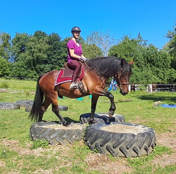 Max, an absolute fun horse! Super friendly gelding with excellent manners, very well-behaved in handling, loves the trails and is very reliable, good basic gaits, pleasant to ride, comfortable seat, a dream horse with great looks, baroque type, come by and fall in love, 8 years old, 157 cm. For trail riding, outdoor riding, and leisure riding. Both English and Western riding are possible. Used to open stabling and herd living, box stabling is also not a problem. Equine passport available. All our horses are familiar with groundwork, different terrains, cars, agricultural machinery, as well as cows, donkeys, sheep, pigs, dogs, cats, and chickens. For information and to schedule an appointment, call 08536-2890292 (voicemail available) or 0157-78378455 (no mobile network at the stable). Please no private messages, emails, or WhatsApp inquiries!! Sunday is a day off. Accessories and transport can be arranged at a low cost. Every customer is granted a legally established exchange right of 6 weeks. Prices are fixed prices. No inquiries for installment payments are desired. Those who come with a trailer and take the horse will receive a €100 discount. Upon purchase, a deposit of €1000 in cash is due. Anyone who wants to take the horse immediately must, of course, pay in full. We conduct a trail ride with customers on two horses of your choice so that you can get to know your dream horse and check if it is the right horse for you. Each appointment costs €35, regardless of whether you ride, have a trial ride, or take a walk... every additional rider (friend, sister, trainer...) pays the same if they ride along; just watching costs us time and thus €20. The amount will be refunded on the same day upon the purchase of a horse. Due to multiple occurrences, we ask for truthful information regarding the rider's weight. In case of untruthful statements, we reserve the right to decline a trial ride on-site. For the sake of our horses, we do not want to impose more than 120 kg on our well-built horses. As this is a living animal, these are merely impressions from the caretaker and not guaranteed characteristics of the horse. Further horses/ponies are available in my other ads or upon request.