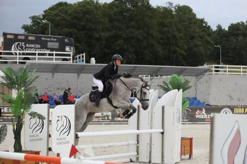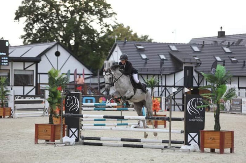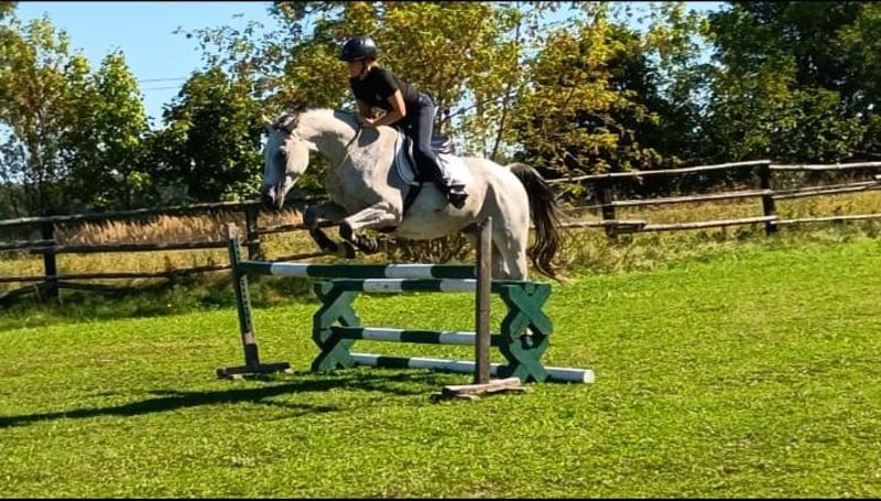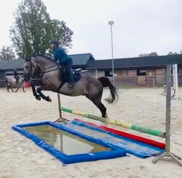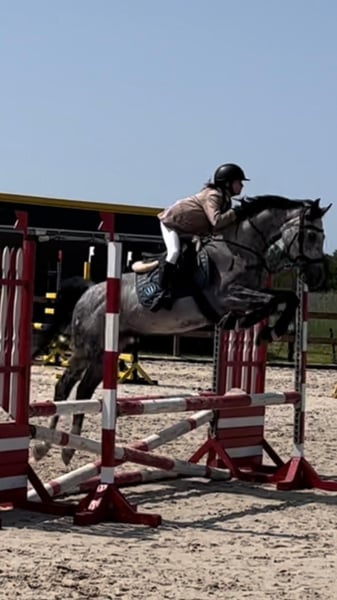 9-year-old grey gelding sired by the Oldenburg stallion Lissaro. Pleasant to ride, well-trained (flying changes, piaffe, passage, canter from standstill, lateral movements, etc.). Successful in 100 cm competitions with potential for more. Easy to ride in the show jumping arena, unafraid of colors, different footing, or new obstacles. Handles all situations calmly, including transport, farrier visits, and grooming. Only to be placed in good hands. Transport and a two-day trial at the destination can be arranged.