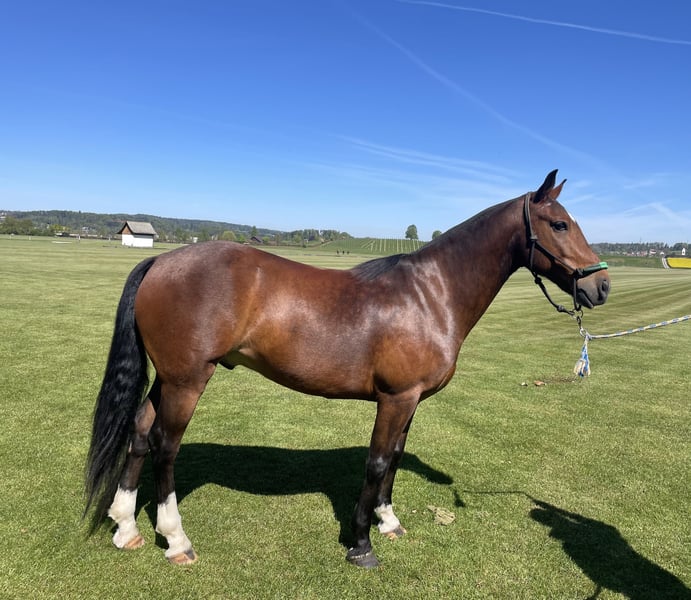 For sale is my 7-year-old gelding, which I imported from Argentina to Switzerland two years ago. He is in excellent condition and can be tried at any time. He is currently used in Low Goal and Medium Goal polo. - Suitable for beginners - Light to ride - Playful, affectionate, and very trusting - Easy to handle on rides, suitable as a leisure horse - Easy to integrate into a herd - Farrier- and loading-friendly - Recent dental care and shoeing performed - Regularly dewormed and vaccinated