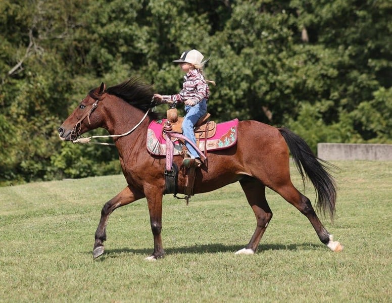 ONLINE AUCTION Place your bids at www.PlatinumEquineAuction.com Starting Bid $3500 Auction ends October 6th, 2024 Need a new saddle? Check out White Rock Saddles on our website or Facebook! Azule is a stout built beautiful Bay Gelding that is standing 13.1hh and he is a 6 year old. Azule is a do it all kind of horse! The kids have ridden him out on the ranch and pushed cows through some of the roughest terrain that you will see. He is very sure footed and takes care of his rider! He can go out and hit the trails and just cruise along slow and easy. He rides with his head low and lopes perfect circles, has a great stop and reins around good as well. He would go english and can jump as well. He has been exposed to all kinds of wildlife. He will go up or down steep slopes, across deep creeks, over downed trees, and over all types of rough terrain while still being sure footed. He has been ridden through town and is safe in traffic is not spooky. He has a smooth jog, a VERY VERY nice easy to set lope! Azule is an excellent horse for anything from trail to ranch work and is pleasure to be around! He is the horse that is stout enought to carry an adult and gentle enought to carry the kiddos!! We are located in Brodhead, KY. Feel free to call Lucky 13 Equine Lysandra 765-717-2041 with any questions. ONLINE AUCTION Place your bids at www.PlatinumEquineAuction.com Starting Bid $3500 Auction ends October 6th, 2024 Need a new saddle? Check out White Rock Saddles on our website or Facebook!