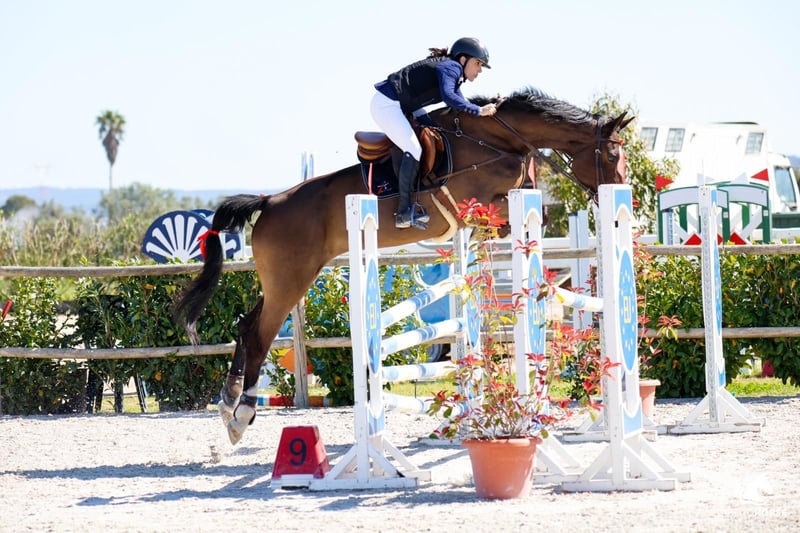 Mare with proven experience up to 1.40m, showing great jumping ability and an exceptional willingness to work. She never switches off — always focused, forward, and committed in the ring. She has a very good mind, making her a great match for a young rider looking to progress and move up the levels. She’s the kind of horse that teaches and pushes the rider to improve. She does have some character: can be a bit touchy and may kick, so she requires respectful handling and an experienced rider. That said, she is very, very kind in daily handling and easy to manage on the ground. For safety, she should always be handled and ridden with protective boots (front and hind). A talented and genuine jumper with plenty to offer the right partner.