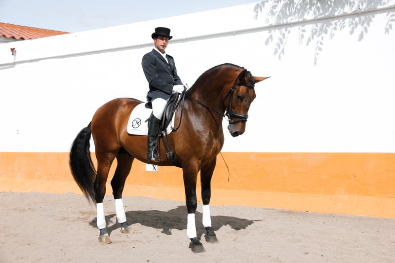 Uitstekende PRE, met grote geschiktheid voor dressuur, prachtig karakter, amplitude, flexibiliteit, schoonheid, grote hoogte en fantastische oorsprong (María Fernanda de la Escalera, Guardiola en Miura)
