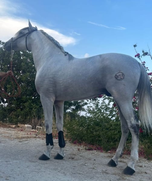 Tarugo is a classic PRE horse, embodying the traditional appearance that has characterized the Pure Spanish Horse breed since its origins. A medium-sized, baroque-type horse, he is particularly notable for his gentle temperament. We could describe him as an accomplished and artistic performer, effortlessly executing series of piaffe changes and performing excellent haute école, as well as lateral movements and pirouettes. Tarugo is a stallion, yet he is very calm and relaxed. This magnificent equine is at an ideal age for a rider of any level to enjoy, from beginners to professionals seeking to deepen their training, refine their skills, and take him even further in classical dressage and haute école, as he is very close to Grand Prix level. Since he tests negative for Piro and is a virgin, he would be an excellent export prospect for countries that require these two criteria.