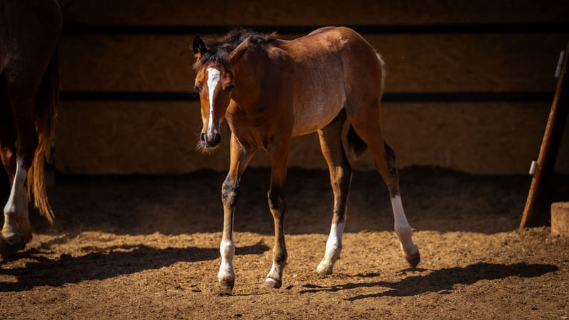 Manovius MV – Potro PRE de color raro Rabicano + Gen Perla Manovius MV es un potro que no pasa desapercibido – y tampoco se olvida. Su rara coloración Rabicano en combinación con el Gen Perla y una expresión facial destacada lo convierten en una verdadera joya. Actualmente, es el único PRE en el mundo con exactamente esta genética de color. Pero no solo tiene mucho que ofrecer visualmente: Manovius es cariñoso, busca la cercanía con las personas y se enfrenta a todo con curiosidad y apertura, aprendiendo rápidamente – ya sea al ponerle la cabezada o al dar los cascos. Desde ahora, muestra una base correcta, articulaciones fuertes y las proporciones armónicas del antiguo tipo español barroco. Su altura final será de aproximadamente 165 cm, lo que lo convierte en un compañero versátil – ya sea en la cría para una herencia de color y tipo especial, en exhibiciones como un atractivo visual o en el ámbito recreativo como un compañero fiable. Manovius MV combina colores especiales, carácter y elegancia barroca – un joven semental que ya tiene ese algo especial.