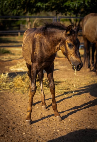 Rasse: PRE Typ: Barockpferd Geschlecht: Hengst Alter: 7 Monate Farbe: Smokey Black mit Pearl-Gen Hauptdisziplin: Barock, Freizeit Weitere Disziplinen: Dressur, Working Equitation Zuchtverband: Optional mit PRE-Papieren (ANCCE) oder ohne Weitere Merkmale: sehr barock gebaut neugierig & menschenbezogen elegante, kraftvolle Gänge aktuell roh gesund, klar im Kopf Beschreibung Lucerus ist ein außergewöhnliches PRE-Fohlen mit seltenem Farbgen – ein Smokey-Black-Hengst mit Pearl-Gen, das ihm einen faszinierenden, warmen Schimmer verleiht. Er wurde dieses Jahr geboren und ist jetzt 7 Monate jung. Lucerus zeigt sich täglich neugierig, mutig und offen im Umgang. Er sucht aktiv den Kontakt zum Menschen, lernt schnell und beobachtet aufmerksam seine Umgebung. Sein barocker Körperbau kombiniert Kraft mit harmonischen Proportionen, und seine Bewegungen sind für sein Alter bereits beeindruckend: schwebender Trab, energischer Galopp und ein sehr guter Takt. In der Herde ist er freundlich, verspielt und sozial. Stromzaun kennt er selbstverständlich. Lucerus kann mit vollständigen PRE-Papieren ausziehen – oder auf Wunsch ohne, je nach zukünftiger Nutzung und Budget. Ein ideales Fohlen für Liebhaber barocker Linien, Züchter seltener Farbgenetik oder alle, die sich ein außergewöhnlich typvolles Jungpferd wünschen. Mehr Informationen und Videos gerne auf Anfrage!