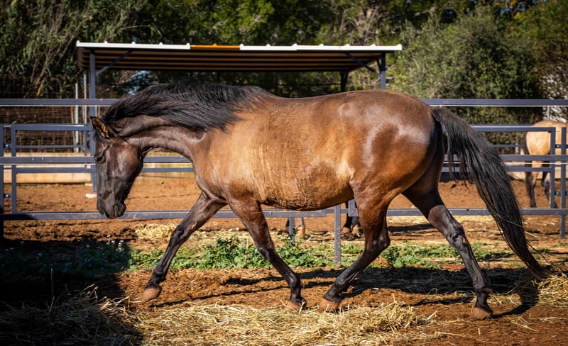 Rasa: PRE Typ: Koń barokowy Płeć: ogierek Wiek: 7 miesięcy Kolor: Smokey Black z genem Pearl Główna dyscyplina: Barok, rekreacja Dodatkowe dyscypliny: Ujeżdżenie, Working Equitation Związek hodowlany: opcjonalnie z dokumentami PRE (ANCCE) lub bez nich Dodatkowe cechy: - bardzo barokowa budowa - ciekawski i przywiązany do ludzi - eleganckie, mocne ruchy - obecnie surowy - zdrowy, jasny umysłowo Opis Lucerus to wyjątkowe źrebię PRE o rzadkim kolorze – Smokey Black z genem Pearl, który nadaje mu fascynujący, ciepły połysk. Urodził się w tym roku i ma obecnie 7 miesięcy. Lucerus codziennie wykazuje ciekawość, odwagę i otwartość w kontaktach. Aktywnie szuka kontaktu z człowiekiem, szybko się uczy i uważnie obserwuje otoczenie. Jego barokowa budowa ciała łączy siłę z harmonijnymi proporcjami, a jego ruchy już na tym etapie są imponujące: unoszący się chód, energiczny galop i bardzo dobry takt. W stadzie jest przyjazny, pełen energii i społeczny. Oczywiście zna ogrodzenie elektryczne. Lucerus może wyjechać z pełną dokumentacją PRE lub, na życzenie, bez niej – w zależności od przyszłego przeznaczenia i budżetu. Idealne źrebię dla miłośników barokowych linii, hodowców rzadkich genów kolorystycznych lub wszystkich, którzy marzą o wyjątkowym, typowym młodym koniu. Więcej informacji i filmy chętnie na życzenie!