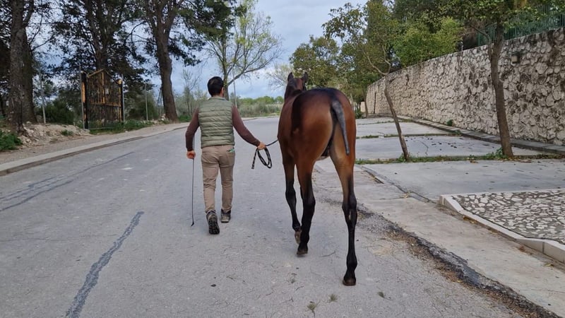 CHR Orlatino PRE Colt born in 2025, dark chestnut, approximately 173 cm at final height, with exceptional presence Magnificent PRE colt born in 2025, with considerable size and an estimated final height of around 173 cm. His dark chestnut color highlights his elegance and commanding presence in the paddock. He stands out for his strong build and expressive head. He possesses impeccable genetics. His paternal line is Valdeolivas, son of Latino CV (full brother to Jalisco de Marengo, World Champion) by Duiker Mor and Trovador IX. His maternal line includes the ELITE American stallion line XXXIII and Educado X. He carries the Aa genotype, which ensures he passes on the black coat color to his offspring. He was born and raised on a private farm and is socialized to walk outdoors comfortably.