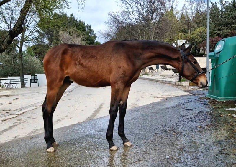 CHR Orlatino Potro PRE de 2025, castaña oscura, 155 cm de alzada actual Magnifico potro PRE nacido en 2025, de mucha talla con una alzada final de 173 cm aprox. . Su color castaño oscuro resalta su elegancia y presencia en el paddock. Destaca por su gran estructura y cara anarnerada. Con genética inmejorable. Línea Paterna Valdeolivas, hijo de Latino CV (hermano propio de Jalisco de Marengo (Campeonndel Mundo) por Duiker Mor y Trovador IX. Línea materna, línea semental ÉLITE Americano XXXIII y Educado X. Tiene en gen Aa, con lo cual transmite capa Negra a su descendencia. Potro nacido y criado en casa particular, estando socializado a pasear en calle.
