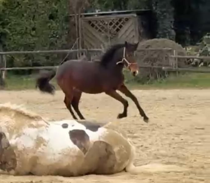 Ein Herz aus Gold: PRE Jährling "Bambi" sucht sein Zuhause Mit seinem charmanten Wesen macht unser kleiner Bambi seinem Namen alle Ehre. Dieser junge PRE-Hengst verzaubert jeden, der ihn kennenlernt, durch seine unglaublich aufgeschlossene und freundliche Art. Er geht neugierig auf Menschen zu, liebt kleine Spieleinheiten und ist im Umgang einfach nur ein Schatz. Trotz seines jungen Alters ist er bereits bestens vorbereitet: Das Fohlen-ABC beherrscht er im Schlaf, und sogar das Tragen einer Decke ist für ihn absolute Routine. Bambi bringt nicht nur einen ehrlichen Charakter mit, sondern überzeugt auch mit einer erstklassigen Abstammung und vollen Papieren, die für seine Qualität sprechen. Mit einem erwarteten Endmaß von ca. 165 cm wächst hier ein Partner heran, der später sowohl im Viereck als auch als treuer Freizeitbegleiter alle Blicke auf sich ziehen wird. Wer einen unkomplizierten, liebevollen Rohdiamanten sucht, wird in Bambi seinen besten Freund finden. PLATZ VOR PREIS!- Der Preis ist deutlich unter seinem Wert, da wir eigentlich aktuell keinen Platz für den süßen haben. Sobald eine Box frei wird und wir nicht mehr Platz Not haben liegt er bei 2400€ Bei Interesse rufen sie gerne an: 01703718888