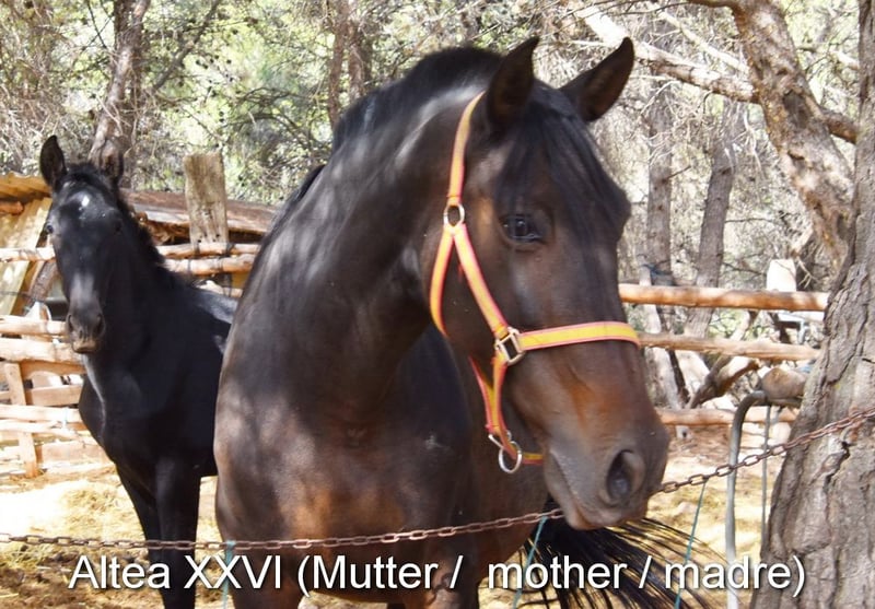lieber Charakter, roh, steht mit seiner Mama draußen, groß, gute Bewegungen und Abstammung, Abstammung: Terry, Yeguada Militar, Yeguada las Arenas, Francisco Olivera Bermudez, hat mehrere qualifizierte Vorfahren www.elegante-andalusier.com