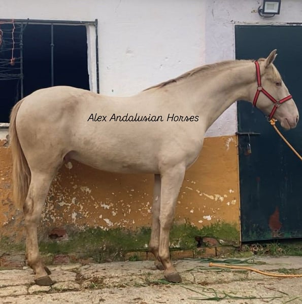 Beautiful stallion Spanish Horse with passport ( not full papers PRE), he is from 05/2024. his size is 1.63cm. He have nice color perlino ! Videos available ! If you like this horse and need more info please contac/us : (+34)657314412. We organize vetcheck, transport, documents etc.. Follow/us on our social network!