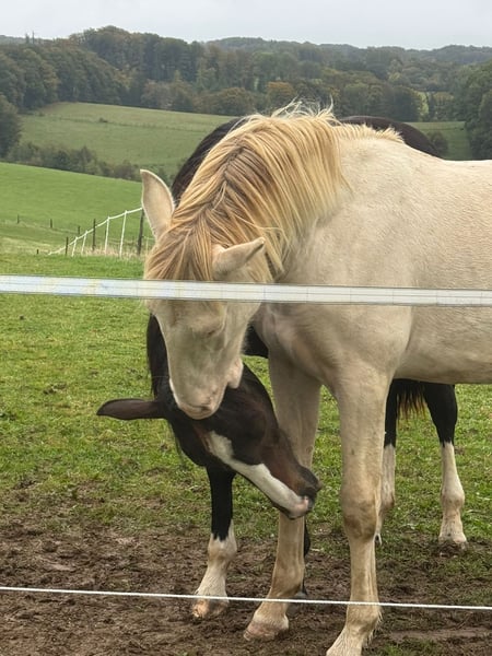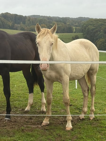 This adorable young PRE stallion is searching for his forever human. He is 1.5 years old, with a very sweet, affectionate, and open personality, and is expected to mature to approximately 16.1–16.2 hh. He already knows the basics of foal training and currently lives in a herd with other foals, where he feels very comfortable and gets along well with everyone. He is also familiar with loading into a trailer and the farrier, always behaving kindly during these activities. Even during walks along the road, he is perfectly well-behaved. His favorite activities include long cuddling sessions, and he simply wants to be involved in everything. Truly a little treasure. He is growing into a confident and brave young stallion, with a future full of possibilities—whether in dressage, working equitation, shows, or simply as a leisure partner. He comes from a reputable Spanish breeding farm and was purchased as a weanling and imported to Germany. Unfortunately, due to personal reasons, the owner has made the heartfelt decision to find him a new home. Her top priority is that he finds a wonderful environment where he receives as much love as he has been given by her. Since we know the breeder personally and are familiar with his handsome sire, we can gladly send videos of his upbringing location and of his father, so you can see the direction in which this little one might develop. A meeting and transportation can be arranged. Location: 51515 Kürten, Germany