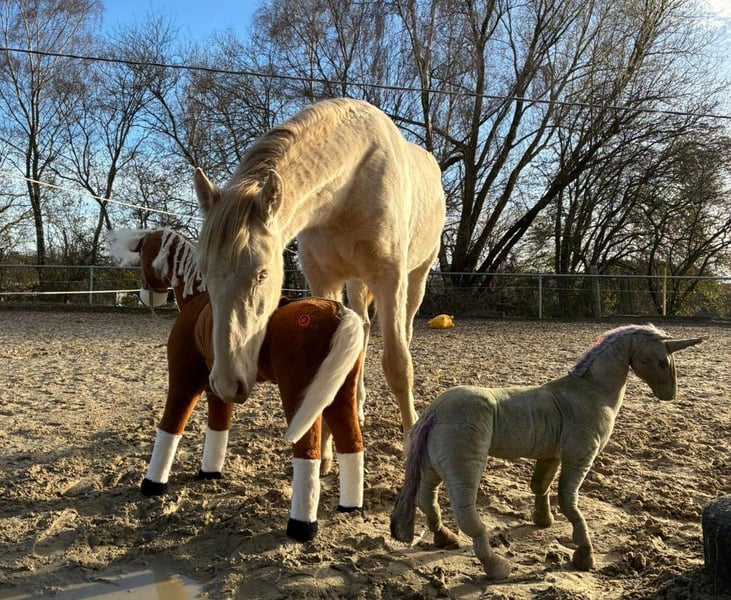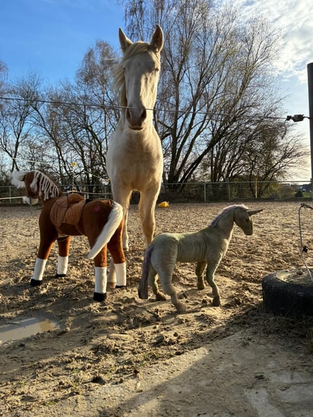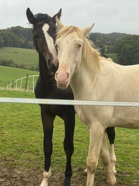 Deze lieve kleine PRE-ruin zoekt zijn hartsvriend. Hij is 1,5 jaar oud, heeft een heel zachtaardig, mensgericht en open karakter en wordt ongeveer 1,60-1,65 m groot als hij volwassen is. Hij kent al de basis van de veulenkunde en leeft momenteel in een kudde met andere veulens, waar hij zich heel prettig voelt en goed met iedereen overweg kan. Hij is ook bekend met de trailer en de hoefsmid en blijft altijd lief tijdens de verzorging. Zelfs tijdens wandelingen langs de weg gedraagt hij zich voorbeeldig. Zijn favoriete bezigheid is lange knuffels en hij wil gewoon overal bij zijn. Een echte schat. Hij groeit uit tot een geweldige en dappere jonge hengst, die in de toekomst in verschillende disciplines uit kan groeien, zoals dressuur, working equitation, show of gewoon als vrijetijdspartner. Hij komt uit een prachtige fokkerij in Spanje en is gekocht als veulen dat weggelopen is en vervolgens naar Duitsland geïmporteerd. Helaas heeft de eigenaresse, vanwege persoonlijke omstandigheden, besloten om een nieuw thuis voor hem te zoeken. Het belangrijkste voor haar is dat hij een geweldig thuis krijgt, waar hij net zoveel liefde krijgt als zij hem geeft. Omdat wij de fokker persoonlijk kennen, en dus ook zijn knappe vader, kunnen wij graag video's sturen van zijn opfokplek, en natuurlijk ook van zijn vader, zodat men kan zien in welke richting de kleine zich zal ontwikkelen. Een kennismaking en transport kunnen gemakkelijk geregeld worden. Locatie: 51515 Kürten, Duitsland