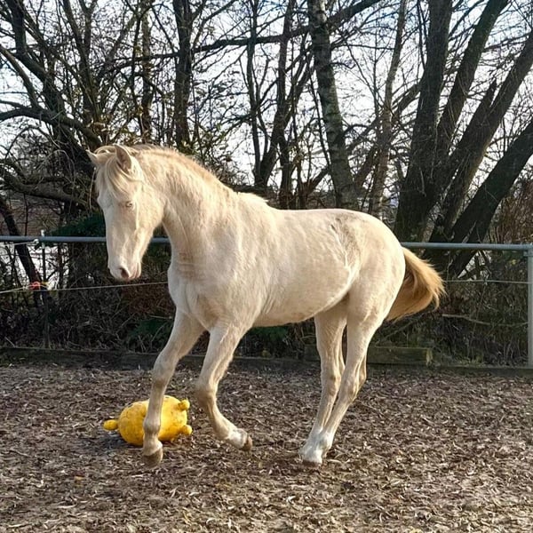 Dieser süße kleine PRE Hengst sucht seinen Herzensmenschen. Er ist 1,5 Jahre alt, hat einen ganz lieben, sehr menschenbezogenen und aufgeschlossenen Charakter und wird ausgewachsen ca. 1,60-165 m. Er kennt bereits das Fohlen ABC und lebt aktuell in der Herde mit anderen Fohlen zusammen, wo er sich sehr wohl fühlt und sich mit allen gut verträgt. Ebenfalls kennt er den Hänger und den Hufschmied und ist immer lieb dabei. Und selbst beim Spazieren gehen an der Straße benimmt er sich vorbildlich. Seine Lieblingstätigkeit sind lange Kuscheleinheiten und er will einfach bei allem dabei sein. Ein wahrer Goldschatz. Er wächst zu einem ganz tollen und mutigen jungen Hengst heran, bei dem es in Zukunft in die verschiedensten Richtungen gehen kann, sowohl in die Dressur, in die Working Equitation, in die Show oder auch einfach als Freizeitpartner. Er kommt aus einer ganz tollen Zucht aus Spanien und wurde als Absetzer gekauft und nach Deutschland importiert. Leider musste die Besitzerin sich nun aus persönlichen Gründen schweren Herzens dazu entscheiden, ein neues Zuhause für ihn zu finden. Dabei ist ihr das Wichtigste, dass er ein ganz tolles Zuhause bekommt, wo er genauso viel Liebe bekommt, wie er es von ihr erhält. Da wir den Züchter persönlich kennen und somit auch seinen bildschönen Vater, können wir gerne auch Videos seines Aufzuchtortes zuschicken und natürlich auch seines Vaters, dass man sehen kann in welche Richtung der Kleine gehen wird. Ein Kennenlernen und der Transport kann gerne organisiert werden. Standort: 51515 Kürten, Deutschland